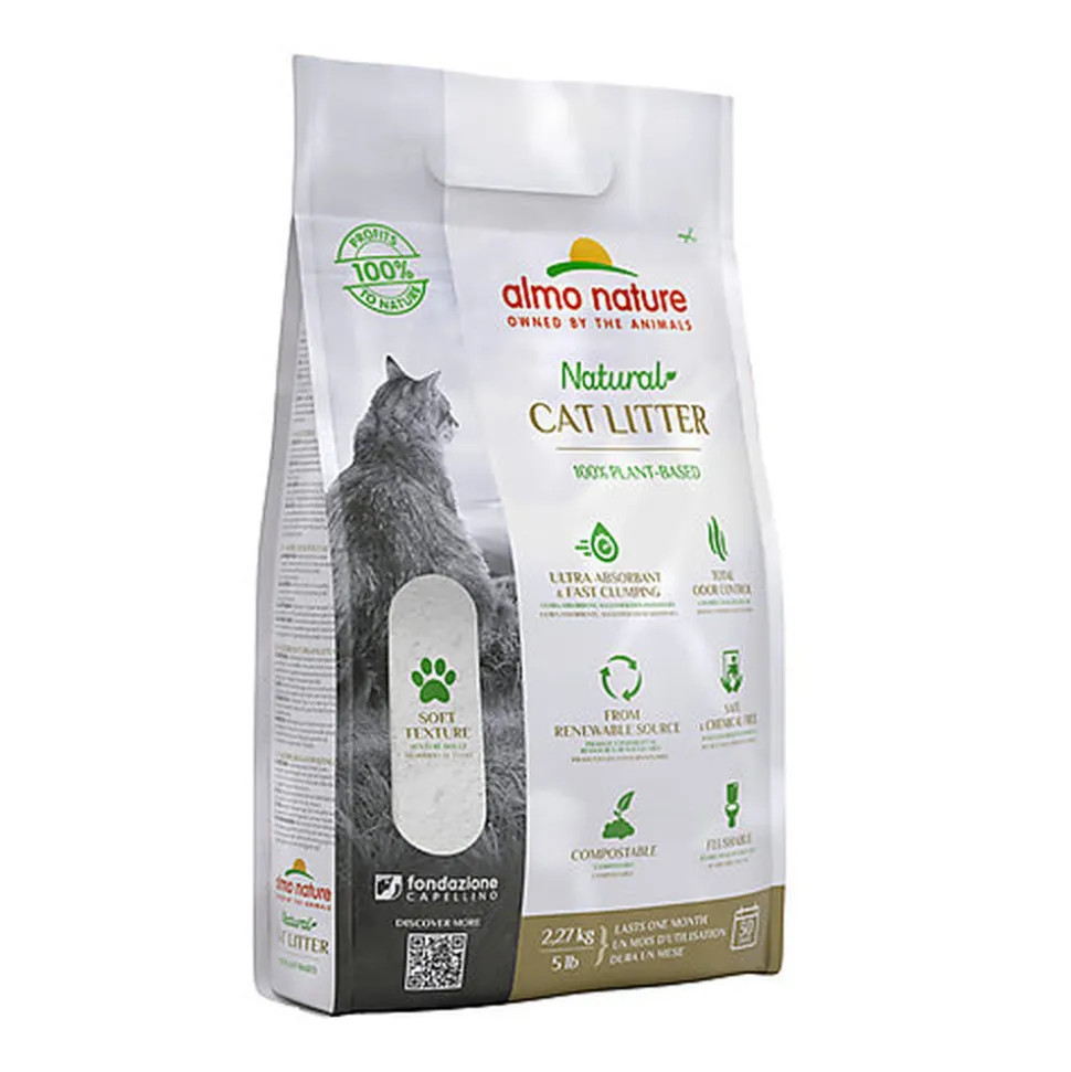 La litière pour chats Almo Nature est entièrement naturelle, biodégradable, compostable et peut même être jetée dans les toilettes. Elle est constituée de fibres végétales dont l’amidon permet une agglomération rapide et dont les enzymes neutralisent les odeurs.