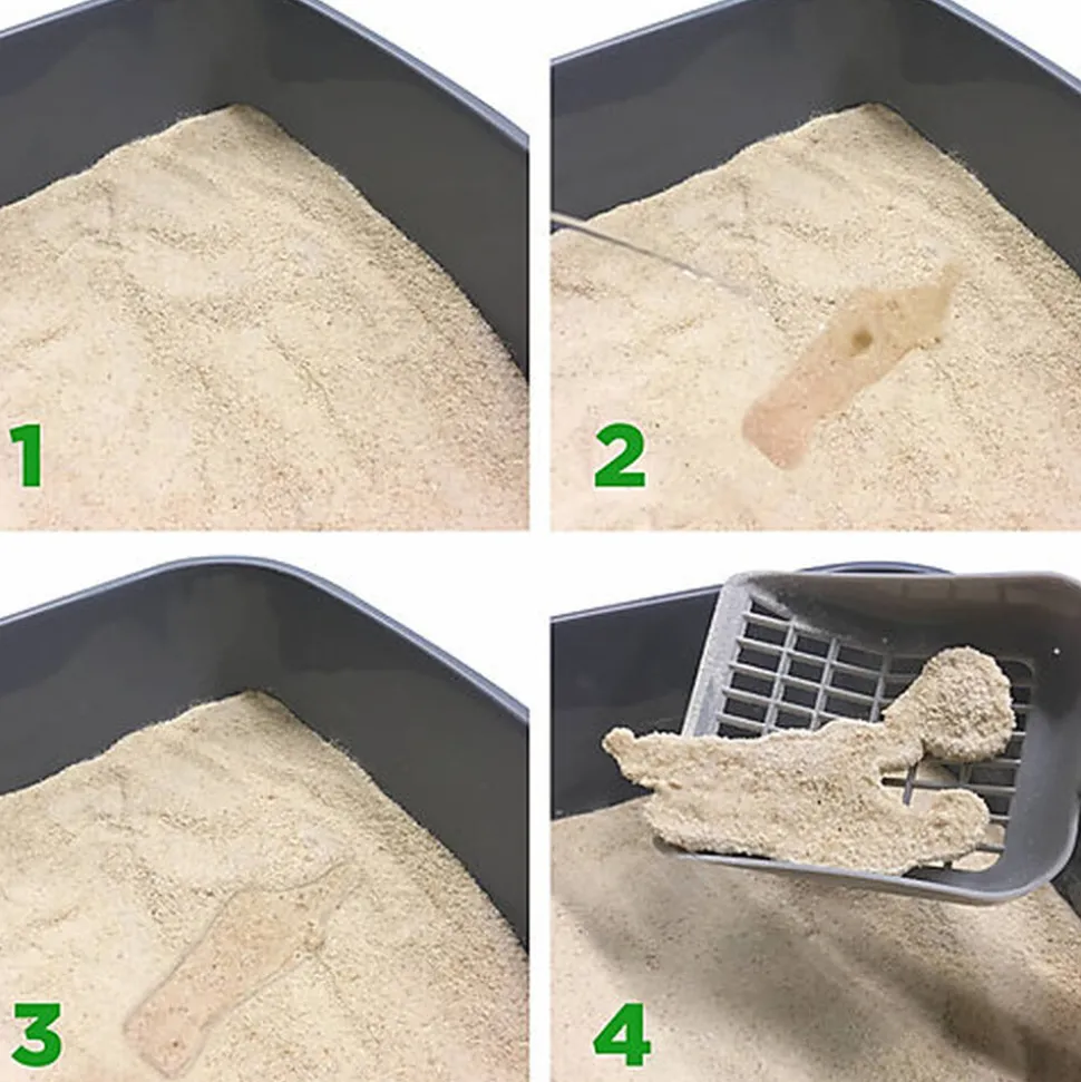 La litière ne contient pas de poussières, de silice, de produits chimiques synthétiques ou d’argile. Elle assure un excellent contrôle des odeurs et grâce au pouvoir concentré des fibres végétales, elle permet une agglomération ultra-rapide, laissant la litière environnante et le bac parfaitement propres.