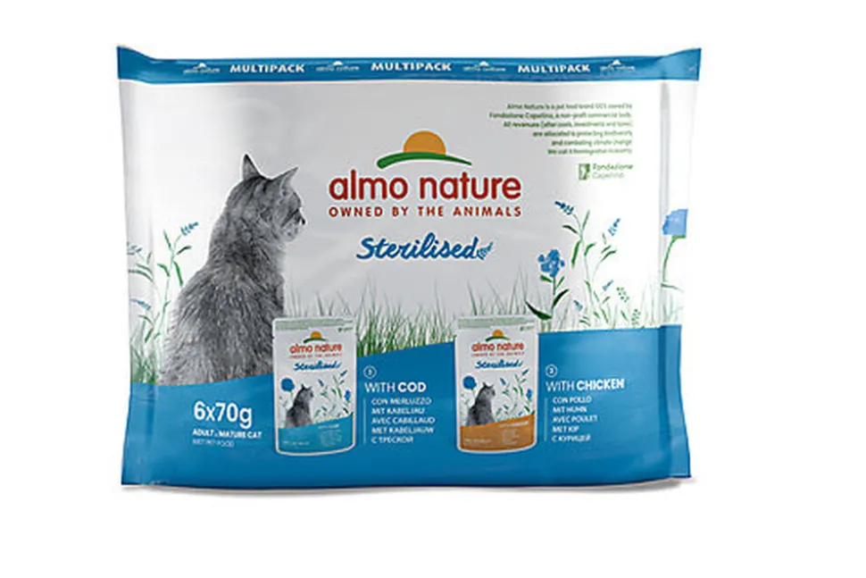 Holistic Sterilised humide – aliment complet pour chat adulte – est disponible en : Sachets fraîcheur de 70 g : recettes en bouchées « Multipack / 6 sachets fraîcheur de 70g : 3 « avec cabillaud » et 3 « avec poulet » – recettes en bouchées » Boîtes de 85 g : recettes en mousse sans gluten.