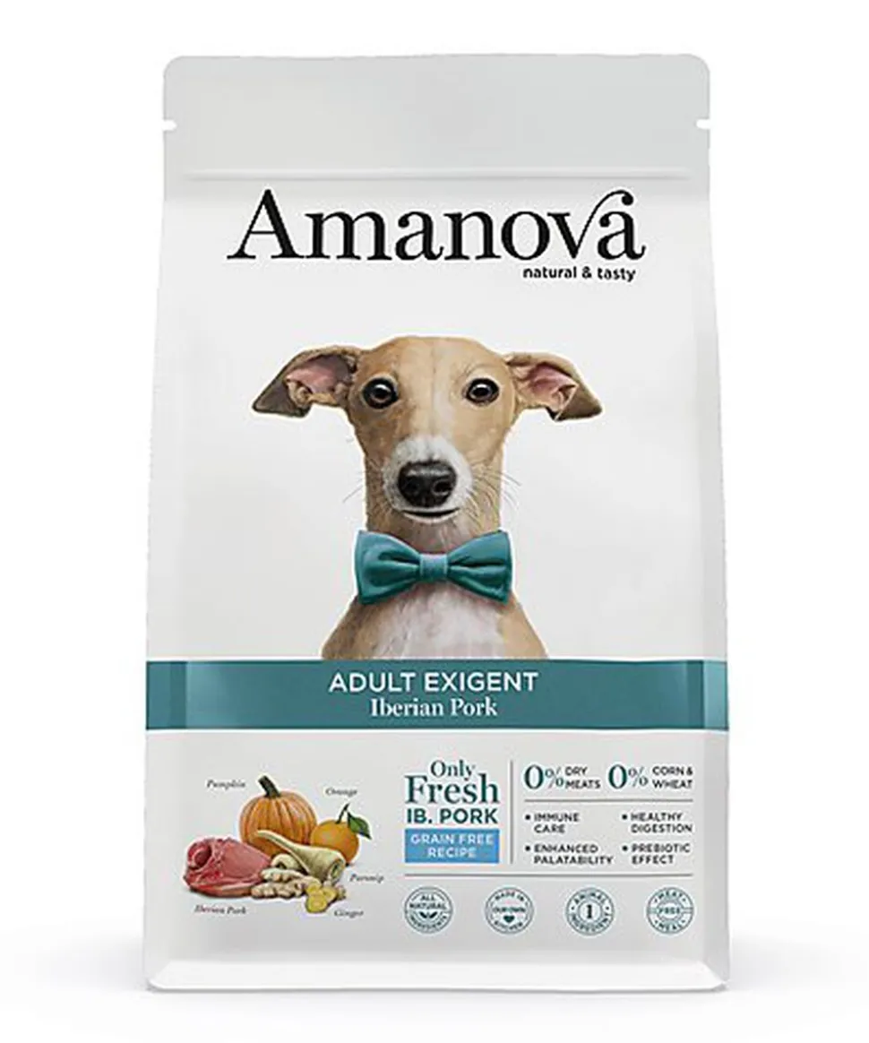 Croquettes pour chien difficile, sans céréales, saveur Porc Ibérique, viande fraiche uniquement – sac de 10 Kg.