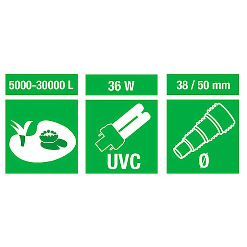 Stérilisateur UVC pour aquariums et bassins d’ornement. La lampe UVC est très efficace pour éliminer les germes pathogènes et les algues vertes en suspension.