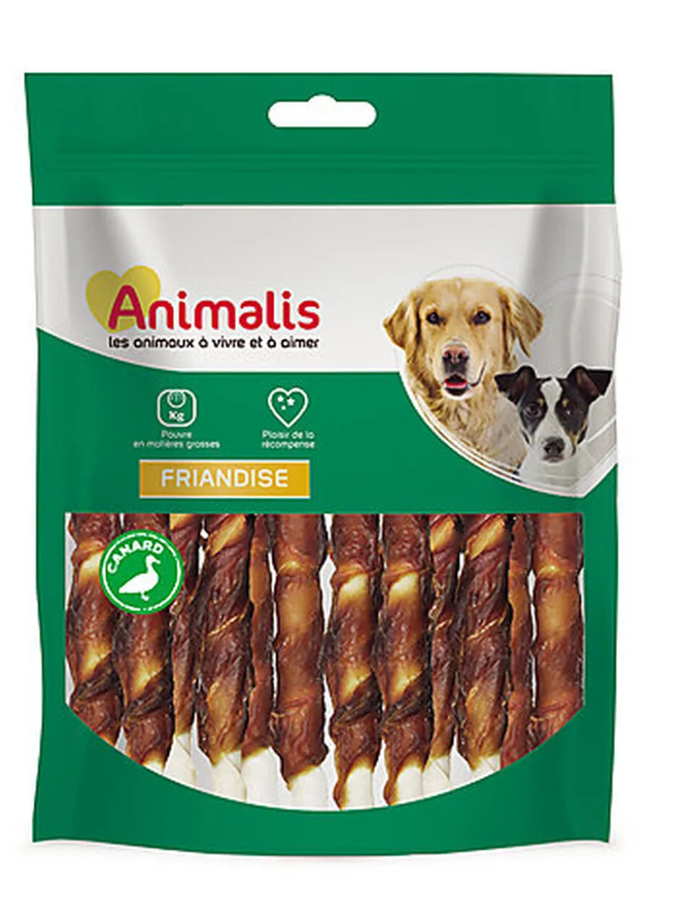 | Composition | Viande de canard 55%, peau de buffle 42%, amidon de maïs 2,6% |