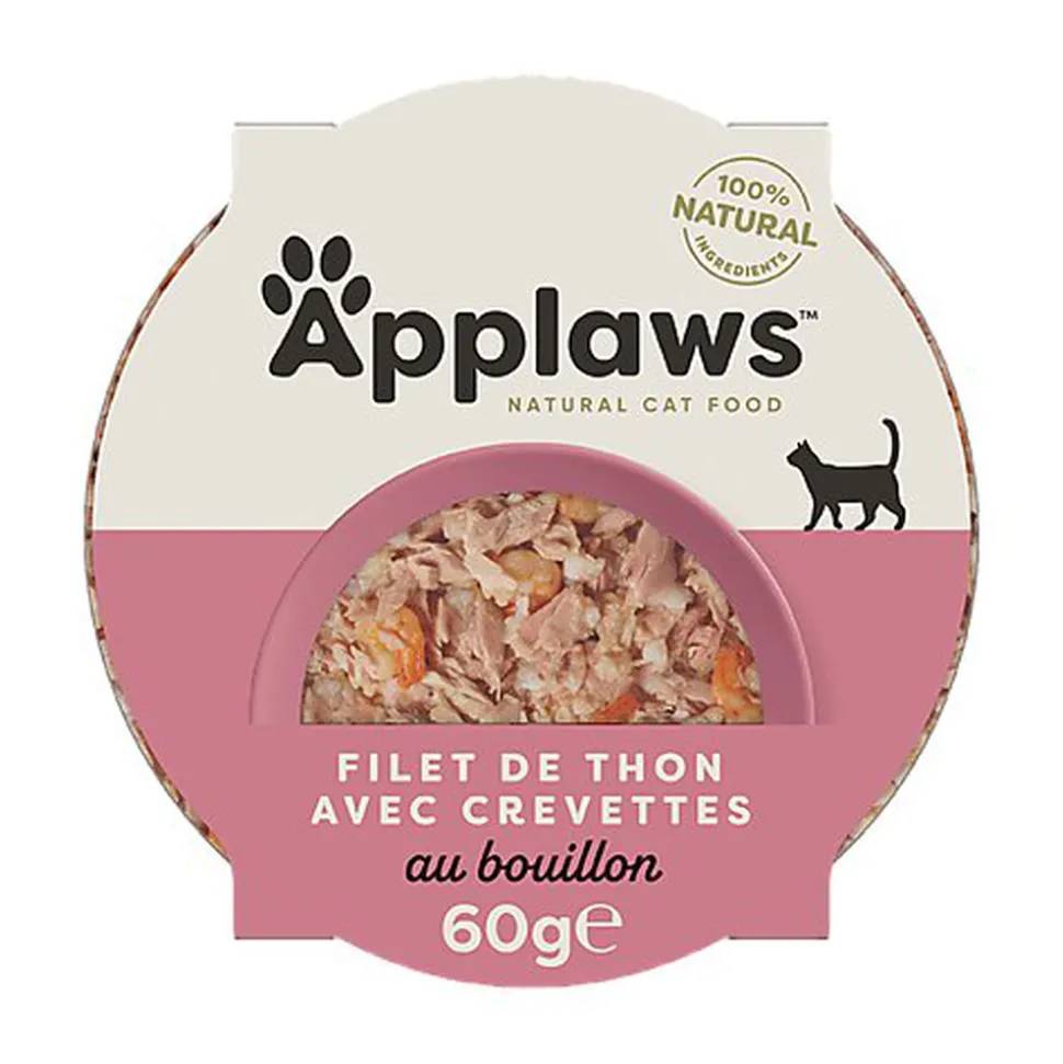 Pots Applaws pour Chat dans un délicieux bouillon est idéal pour la nutrition de vos animaux de compagnie, chaque pot transparent de 60 g est facile à ouvrir, il n’y a pas besoin d’un plat, il suffit de l’ouvrir et de le servir.
