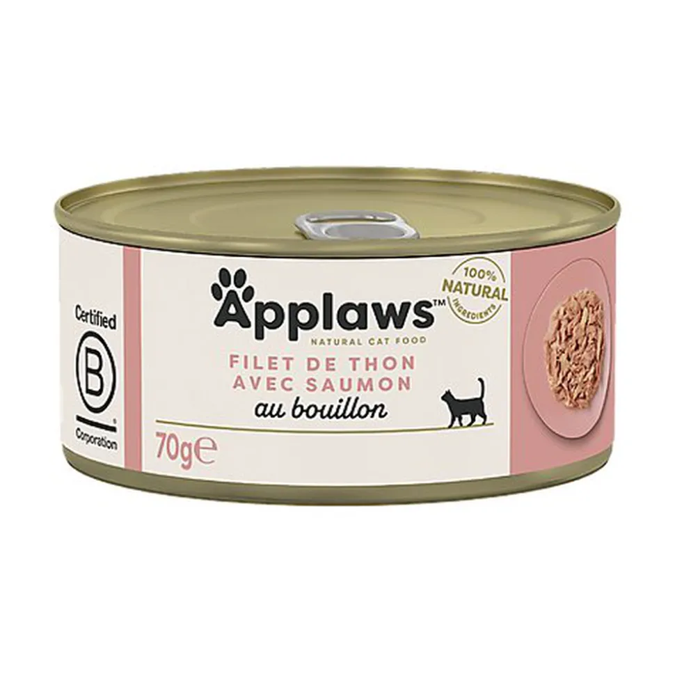| Composition | Filet de thon 40%, saumon 8%, farine de riz, gélifiant aux légumes. |