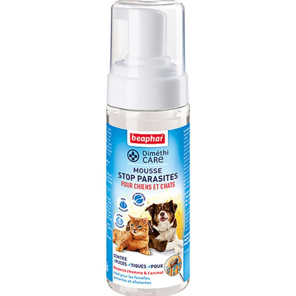 La mousse Diméthicare de Beaphar est spécialement conçue pour les chiens et les chats. Elle est à base de Diméthicone, quiimmobilise physiquement les parasites en agissant comme un piège collant, par simple contact du produit. Les parasites ne peuvent plus bouger et tombent de l’animal ou peuvent être éliminés en brossant le pelage.Le Diméthicone stoppe les infestations des puces, des tiques et des poux, à tous les stades de vie des parasites : oeufs, larves etinsectes adultes.La mousse Diméthicare constitue la solution idéale pour les femelles gestantes et allaitantes. Son action est immédiate et dure pendant 10 jours.La formule spécifique de ce produit : Respecte l’homme et l’animal Ne contient aucun insecticide chimique Ne contient aucun pesticideLa mousse Diméthicare contient également de l’Aloe Vera qui est connu pour ses bienfaits sur l’épiderme. Il nourrit, protège et adoucit le pelage. La lotion convient aux épidermes les plus sensibles et ne colle pas les poils.La mousse Diméthicare de Beaphar représente l’alternative idéale aux insecticides chimiques.