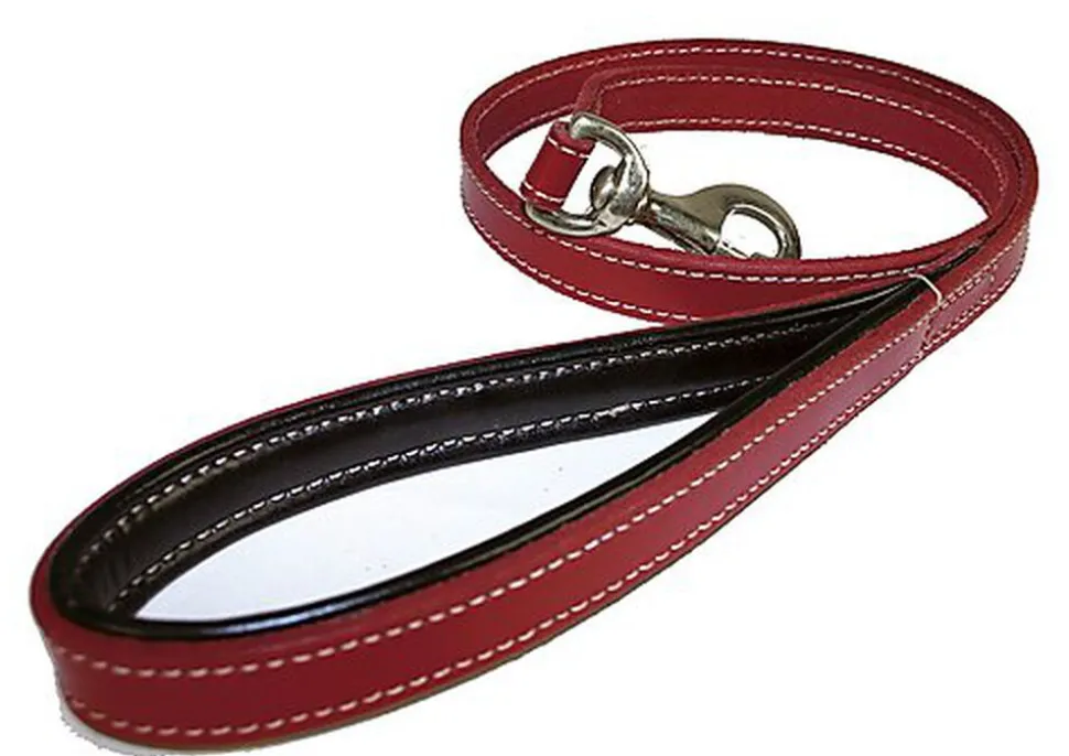 Chic et intemporelle, cette laisse en cuir ornée d’une belle bouclerie dorée sera du plus bel effet avec ses surpiqûres contrastées.