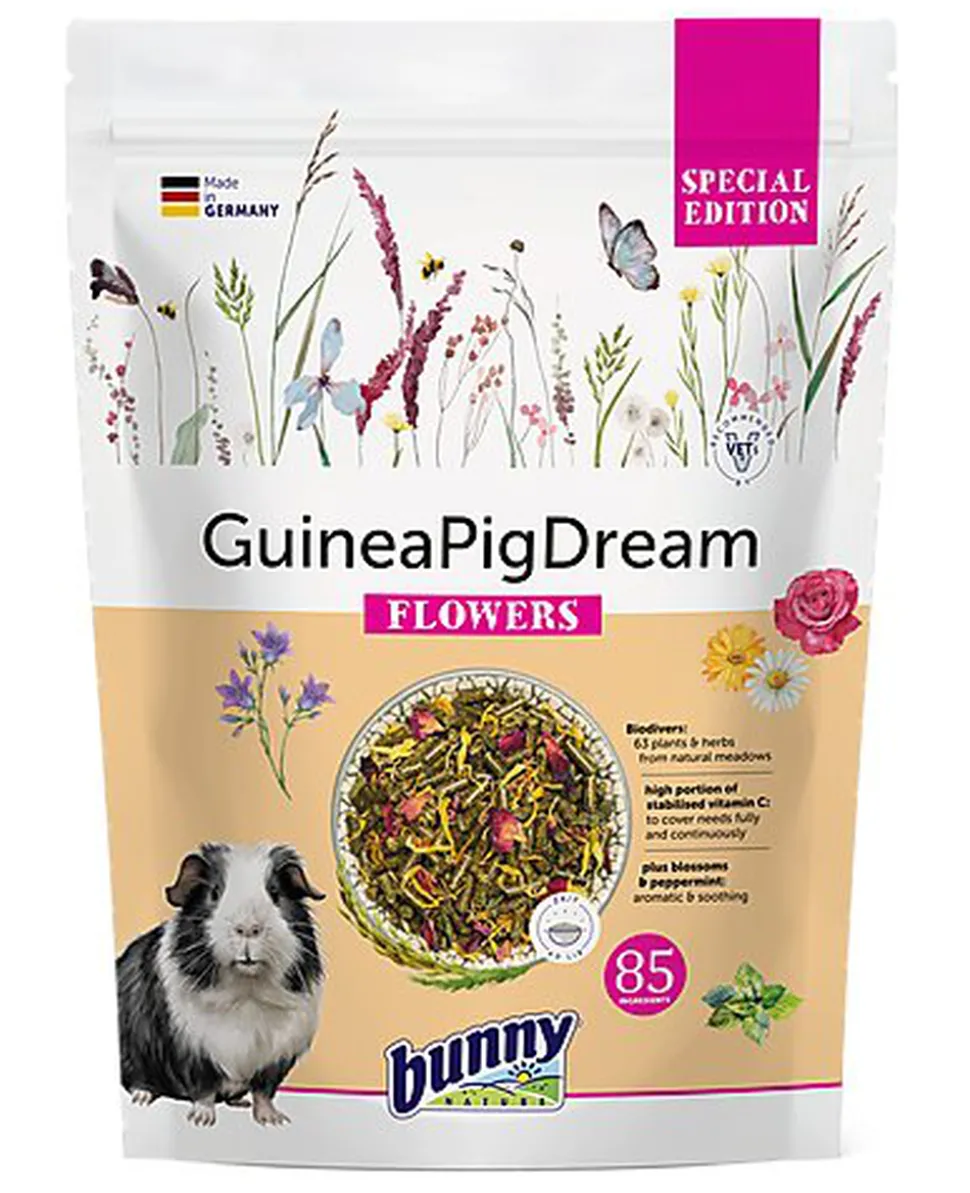 GuineaPig Dream SPECIAL EDITION FLOWERS offres une sélection exceptionnelle d’ingrédients de haute qualité, spécialement adaptés à leurs besoins nutritionnels et physiologiques.