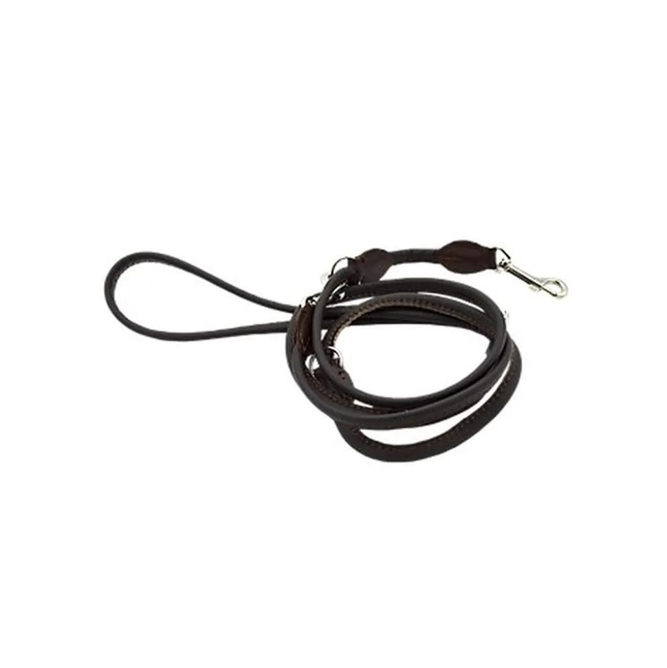 Laisse ronde ajustable pour chien et chat , en cuir de vache nappa tanné en Italie, souple et très résistante. 3 points de réglage permettent à la laisse de se régler sur des longueurs de 1,2 mètres à 2,2 mètres. Entretenez votre laisse avec un simple cirage à cuir incolore.