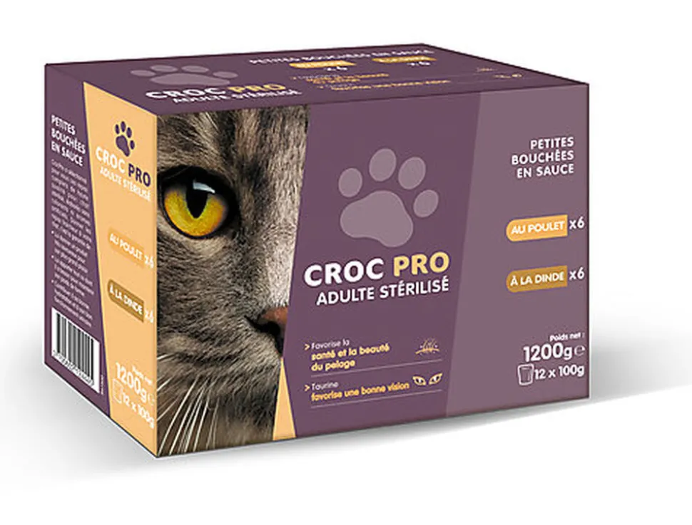 Croc Pro a sélectionné pour vous ces repas complets de haute qualité pour chat adulte stérilisé, élaborés sans colorants ni arômes artificiels. Donner les repas fraîcheur Croc Pro à votre chat c’est la garantie de :