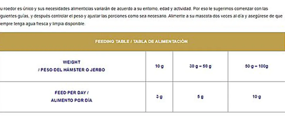 C’est un produit 100% naturel, sans colorants ajoutés et d’une grande appétence grâce à la diversité des plantes et des arômes qu’il contient dans chaque sachet. De plus, il contient un pourcentage élevé de protéines et de fibres pour favoriser la croissance du petit rongeur et aider à prévenir les problèmes gastro-intestinaux. Naturaliss Hamster et Gerbille est composé d’un mélange de feuilles, de graines et de fruits déshydratés, qui fournissent une alimentation naturelle, nutritive et savoureuse à votre précieux animal de compagnie.