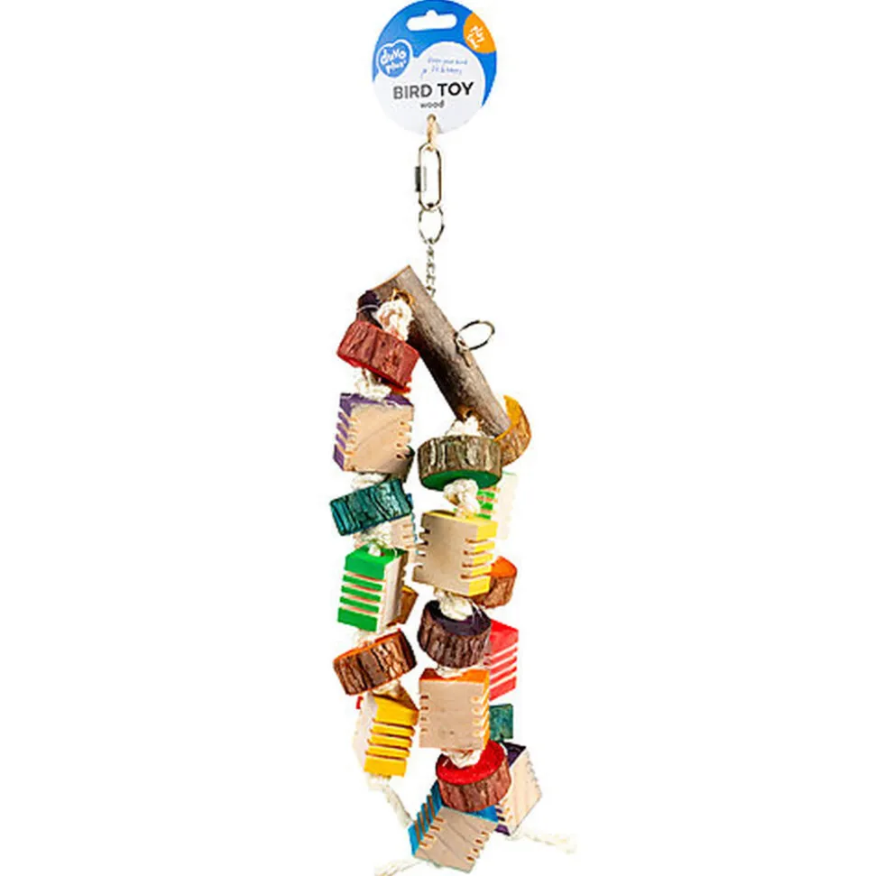 Cette suspension DUVOPLUS est fabriquée en bois de pin, de cèdre et en sisal. Un jouet naturel et amusant, parfait pour grimper et grignoter.