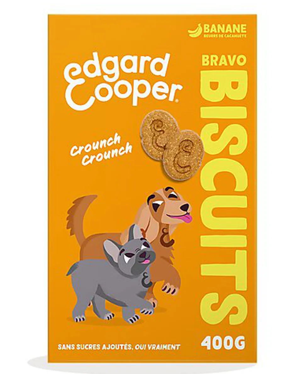 À base de banane et de beurre de cacahuètes, cette friandise est parfaite pour tous les chiens. Sans arômes artificiels, sans gluten et sans sucres ajoutés, mais avec une dose de croquant qui ne les laissera pas indifférents.