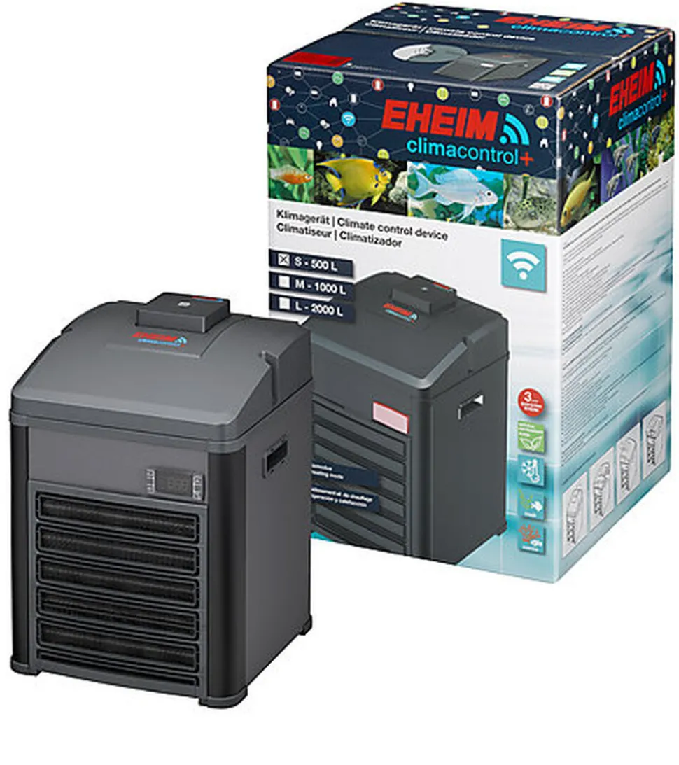 EHEIM climacontrol+ le climatiseur intelligent pour les aquariums d’eau douce et d’eau de mer, contrôlé électroniquement avec réglages de la température par WiFi par smartphone, tablette ou PC/Mac, respectueux de l’environnement et économe en énergie.
