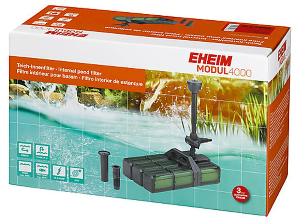 Avec l‘EHEIM Modul 4000, vous disposez d‘un véritable outil polyvalent pour votre bassin de jardin, filtre variable et pompe à jet d‘eau en un seul système.