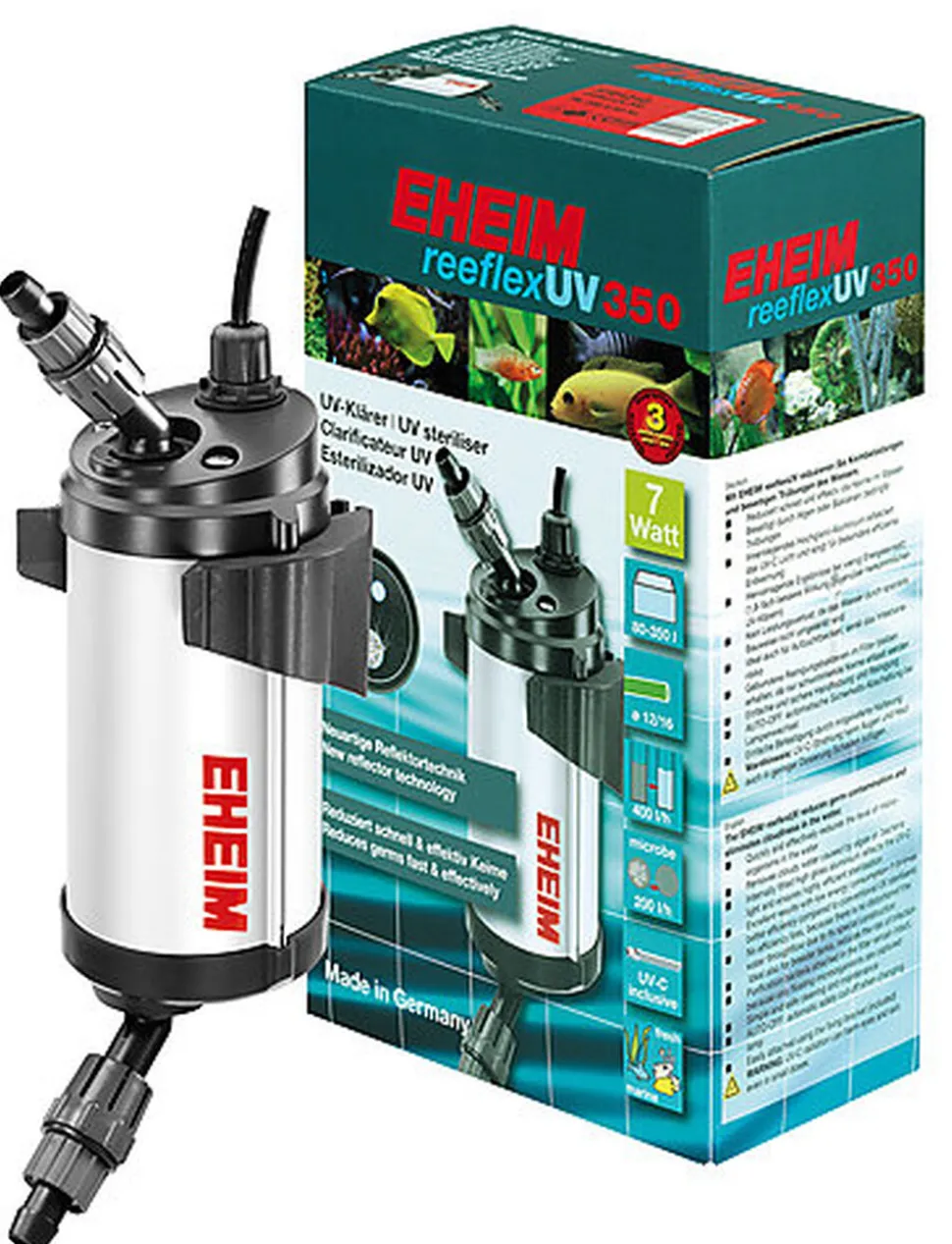 Avec EHEIM reeflexUV vous réduisez la charge bactérienne et combattez la turbidité de l’eau mieux qu’auparavant, reeflexUV constitue une innovation type pour la société EHEIM: un réflecteur incorporé augmente nettement la capacité germicide du rayonnement UV-C.
