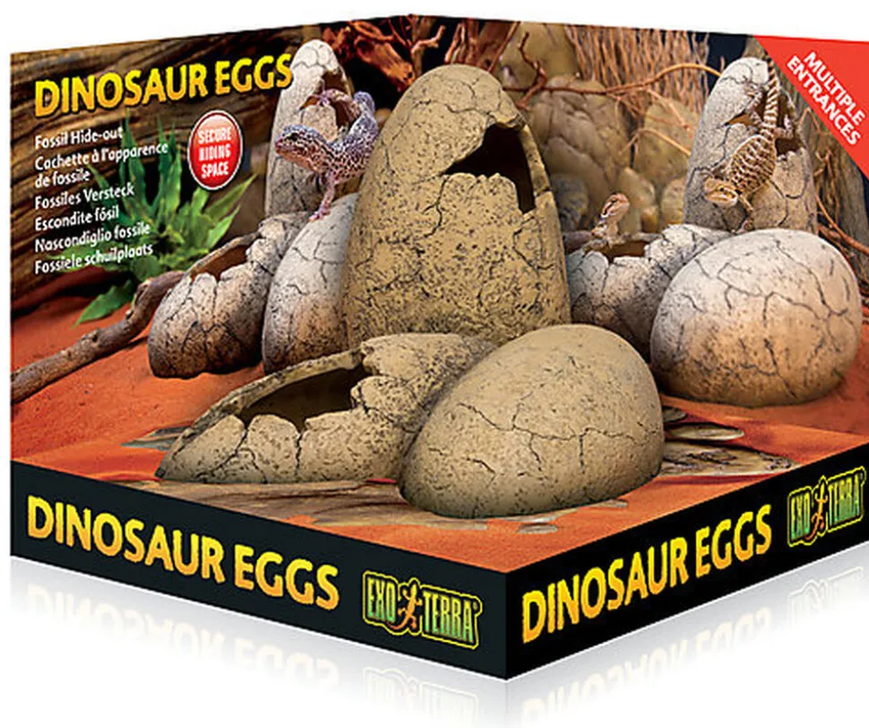 Muni de nombreuses ouvertures pour que votre reptile puisse facilement y entrer, cet abri à l’apparence de fossile lui procure un endroit sûr où se cacher et dormir. De plus, les Œufs de dinosaure permettent de créer un microclimat frais et humide à l’intérieur du terrarium, favorisant ainsi la thermorégulation, l’hydratation et le processus naturel de mue chez les reptiles.