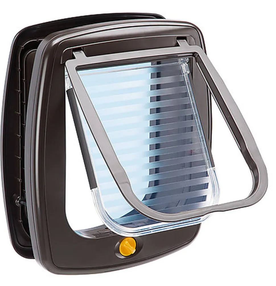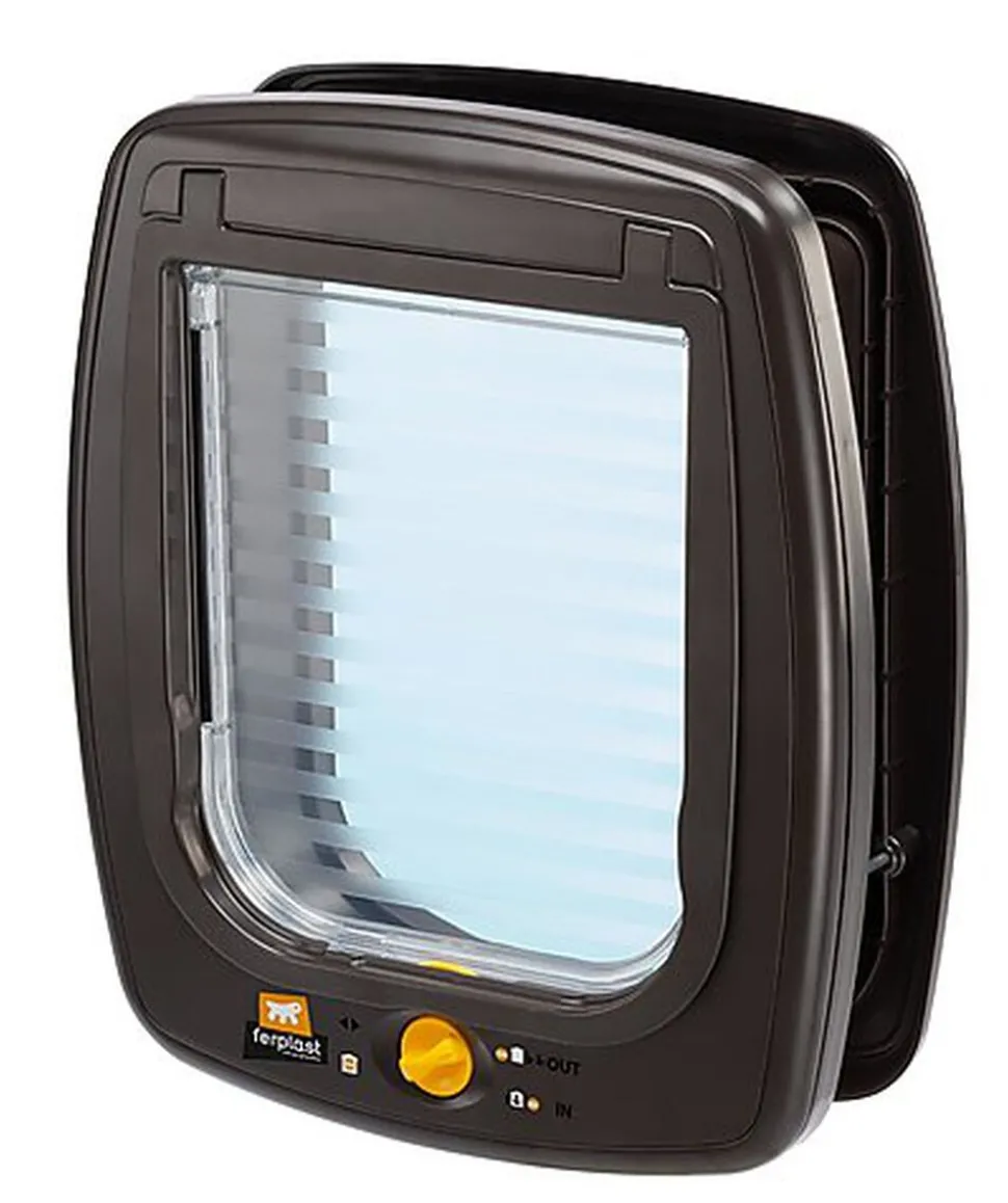 La porte est solide et robuste, en plastique de très bonne qualité et équipée des dispositifs techniques rendant le produit fiable et pratique à utiliser. Elle possède le système innovant de protection contre les courants d’air Wind Stopper et un le système de verrouillage à 4 positions qui permet de règler l’ouverture de la porte en fonction de vos besoins : entrée, sortie, entrée et sortie, ou fermée.
