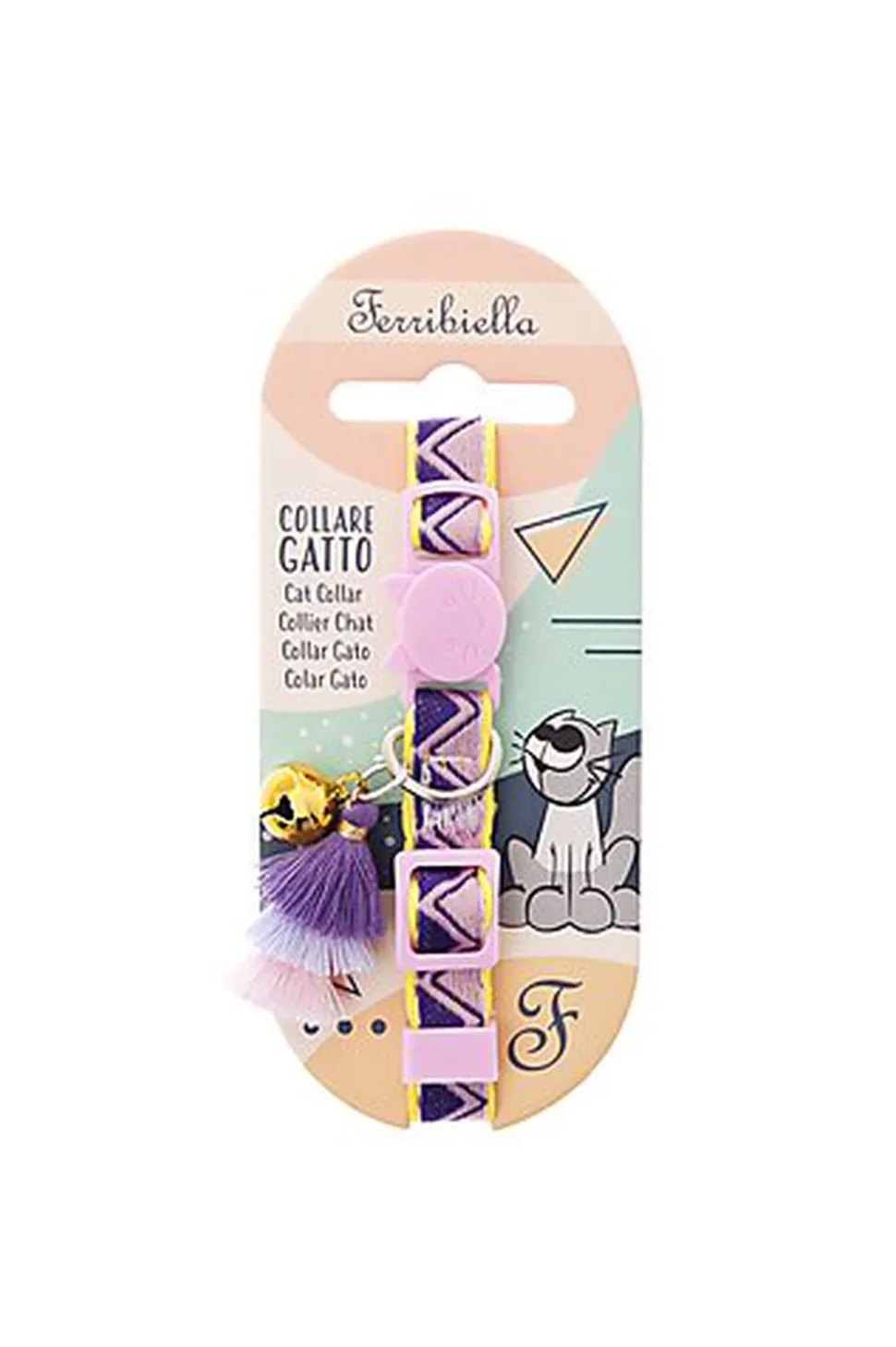 Joli collier pour chat multicolore, doté d’une boucle à dégagement rapide (anti-étranglement) et d’un pompon décoratif.