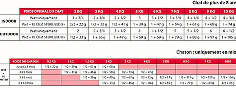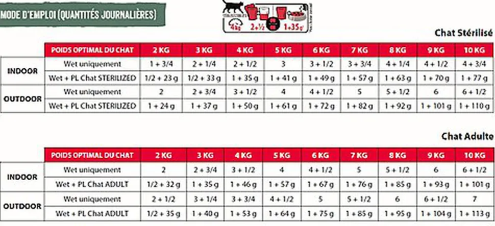 | Directives d’alimentation | Les quantités journalières sont indiquées sur l’emballage. Laisser de l’eau potable à disposition en permanence. |