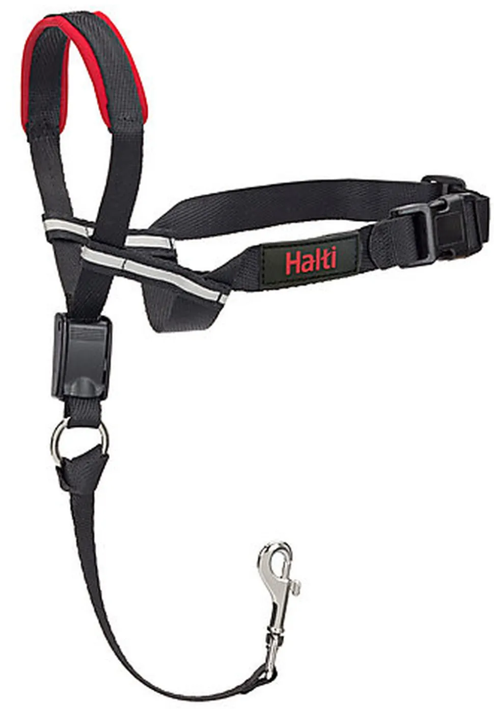 Avec sa muserolle et ses brides latérales réglables, le licol Halti Optifit est un choix populaire pour les races de chiens au museau de différentes formes, comme les boxers et les lévriers.