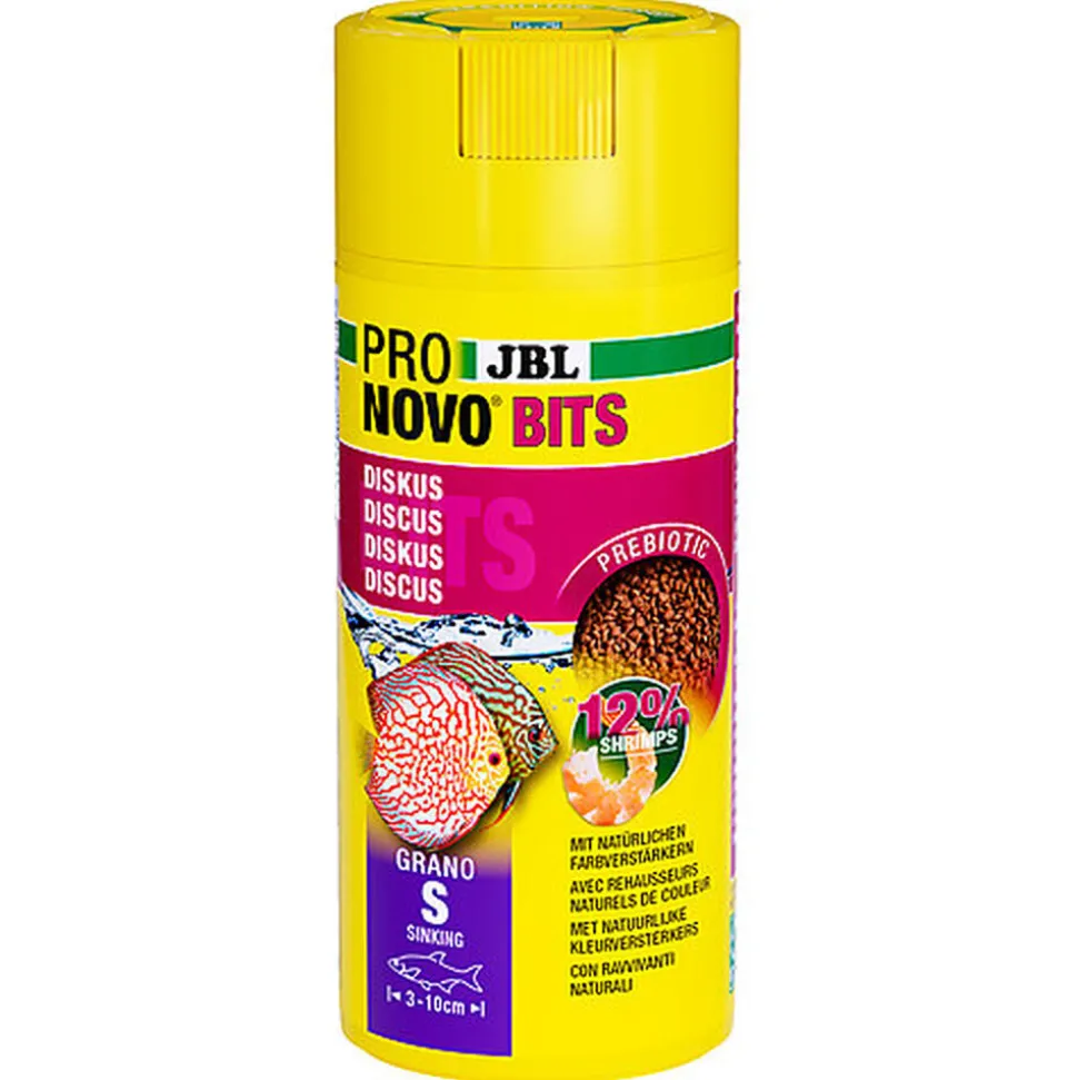 Aliment de base en granulés pour Discus et autres Cichlidés d’Amérique du Sud exigeants de 3 à 10 cm en aquarium, très grande appétence, même chez les Cichlidés difficiles, grâce aux ingrédients de qualité – saumon, crevettes, calamar.