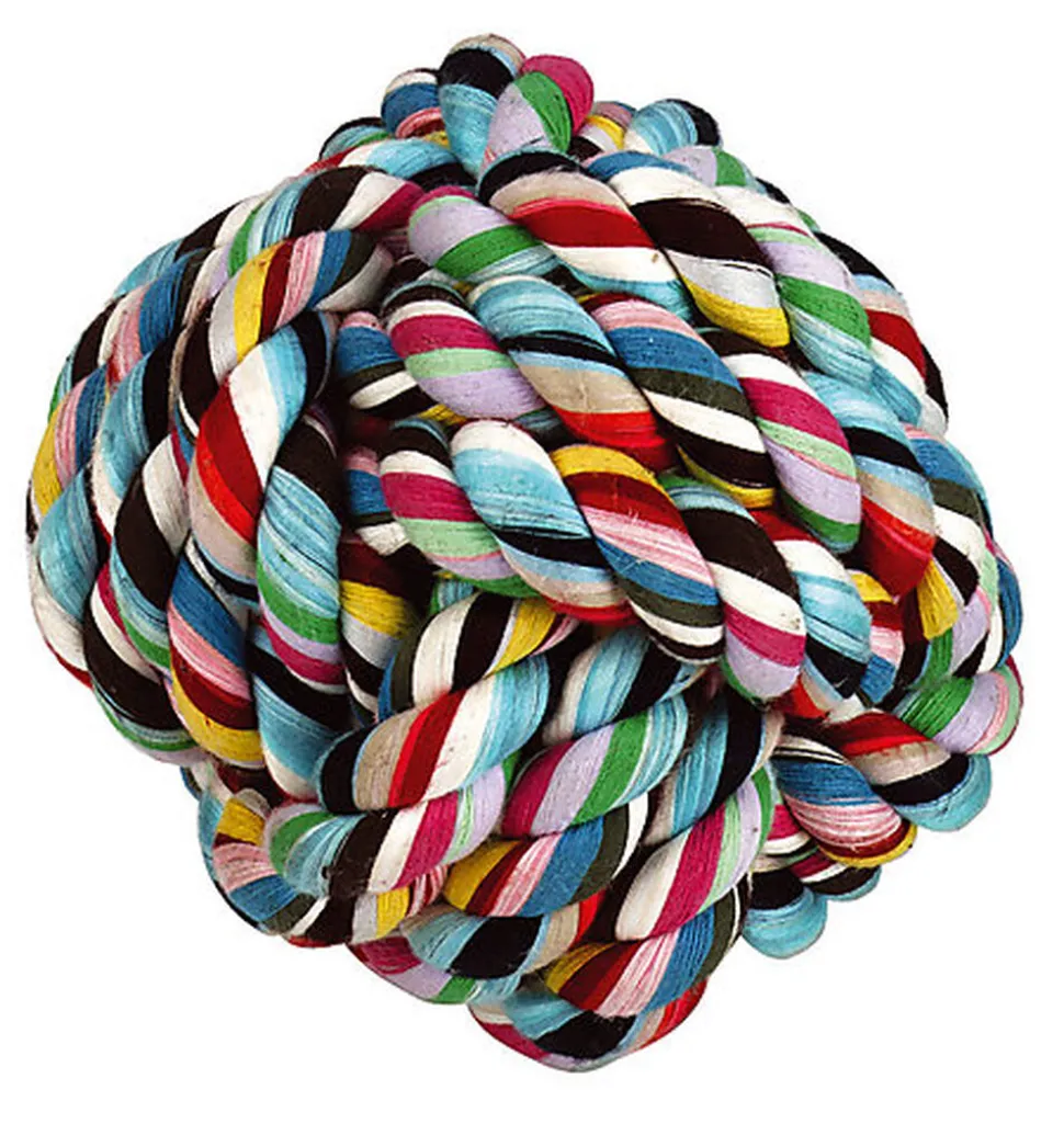Balle nouée pour chien en coton, matière robuste et résistante.