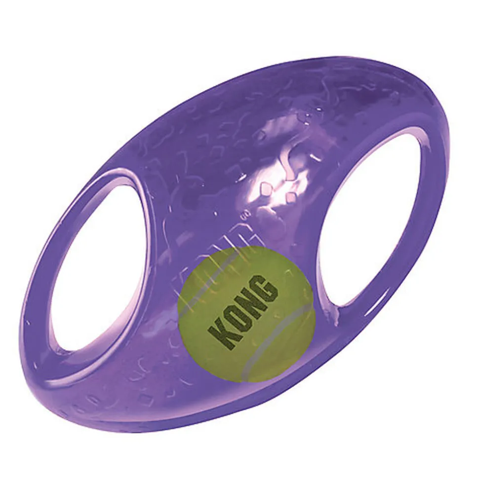 Le KONG Jumbler est un jouet de balle 2-en-1 pour deux fois plus de plaisir interactif. La balle de tennis à l’intérieur et le bruit incitent au jeu tandis que les poignées facilitent la prise. Le Jumbler résiste aux séances de jeux difficiles, ce qui le rend ainsi idéal pour les jeux d’aller chercher. Ce jouet est disponible en deux formes et deux tailles, le strong>KONG Jumbler assurera une session de jeu active et excitante pour vous et votre chien.