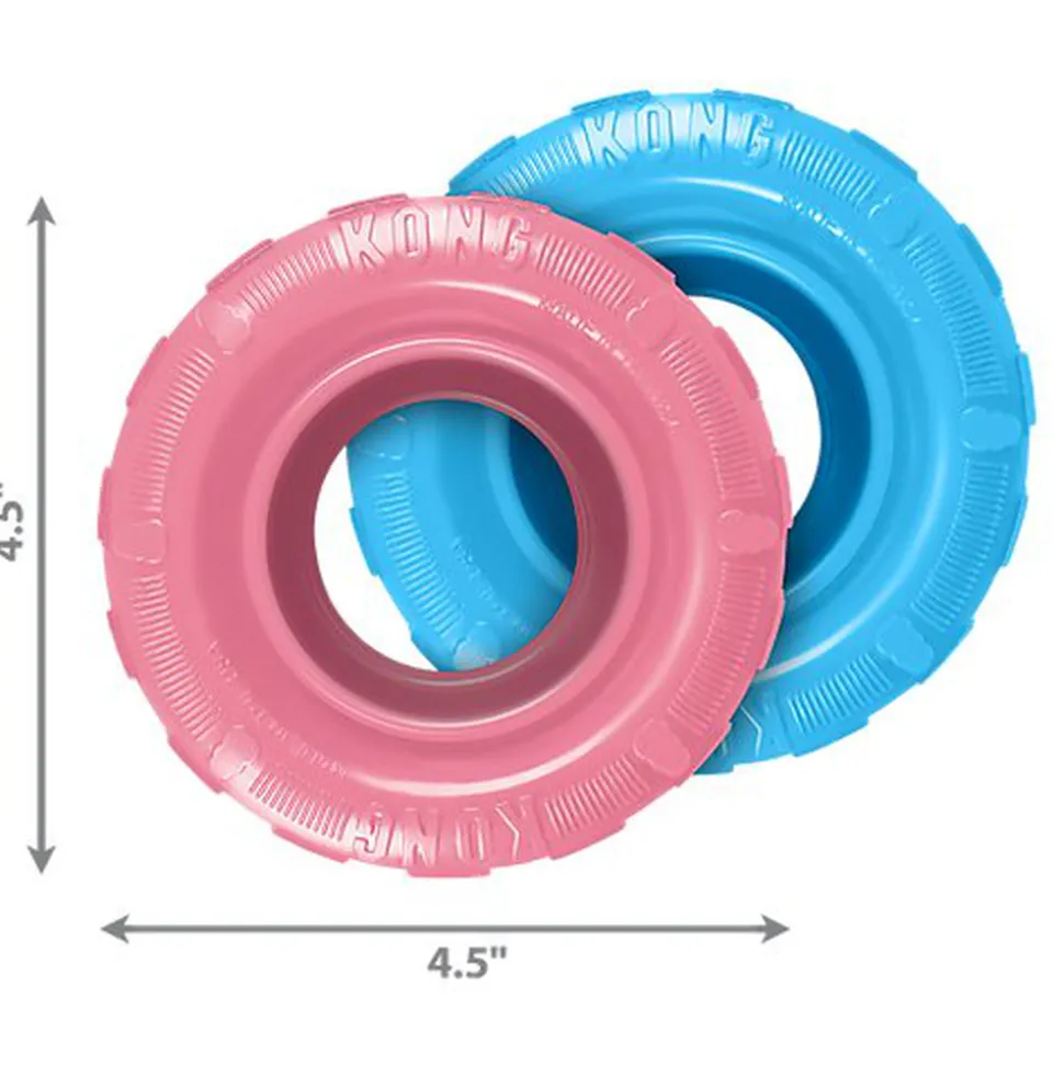 Le KONG Puppy Tire est en forme de pneu et est fait du caoutchouc KONG spécialement formulé pour les chiots.