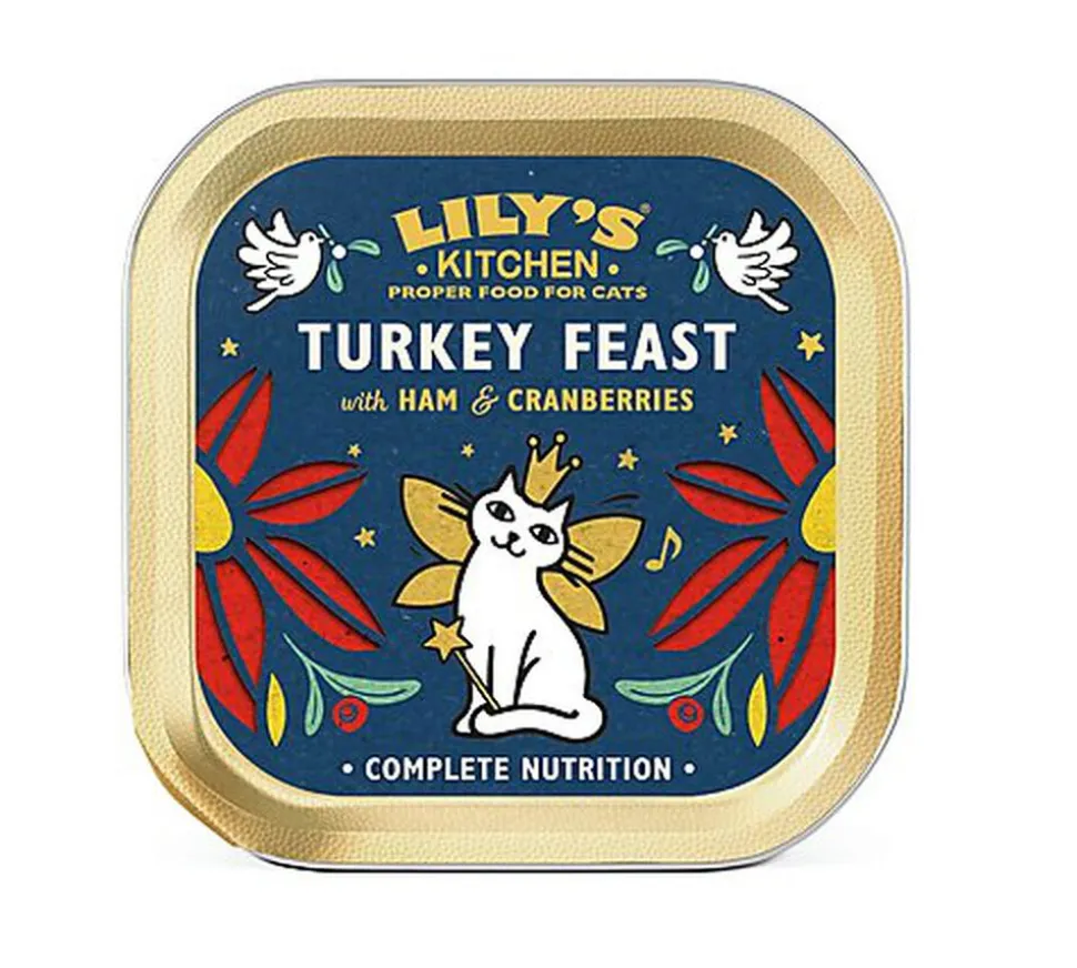 Votre chat ne pourra résister à ce délice de Noël ! Une recette festive spectaculaire, riche en délicieux ingrédients naturels, pour que votre chat puisse partager l’esprit de Noël avec toute la famille. Élaboré à base de dinde fraîchement préparée, de savoureux jambon et d’airelles juteuses, ce superbe plat de fête le fera ronronner de plaisir.
