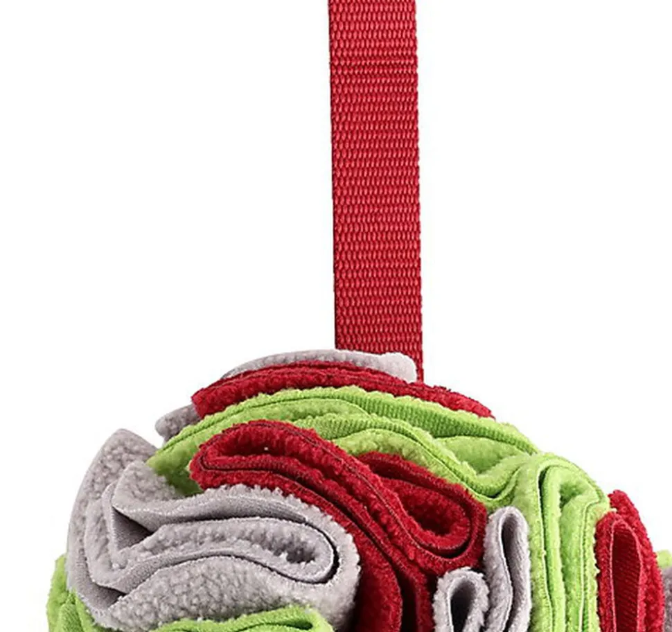 La balle de fouille en fibres recyclées REPREVE© de Minus One sera idéale pour la dépense mentale de votre chien. Cachez des friandises dans ses plis et lancez-la à votre animal. Il devra chercher les friandises en s’aidant de son flair puis les récupérer avec sa truffe ou sa langue.