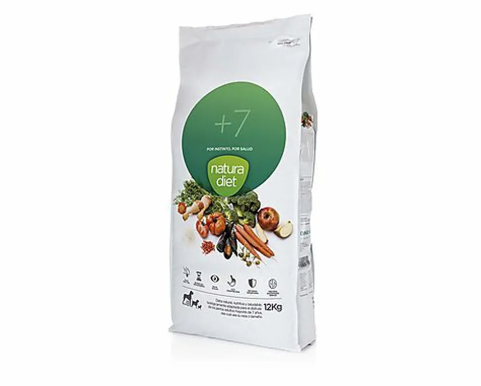 | Plus produit | Natura Diet +7 est un aliment complet et naturel, biologiquement adapté aux chiens adultes de plus de 7 ans, quelle que soit leur race. Il ralentit le vieillissement, prévient les troubles séniles, favorise la santé oculaire et renforce le système immunitaire des chiens |