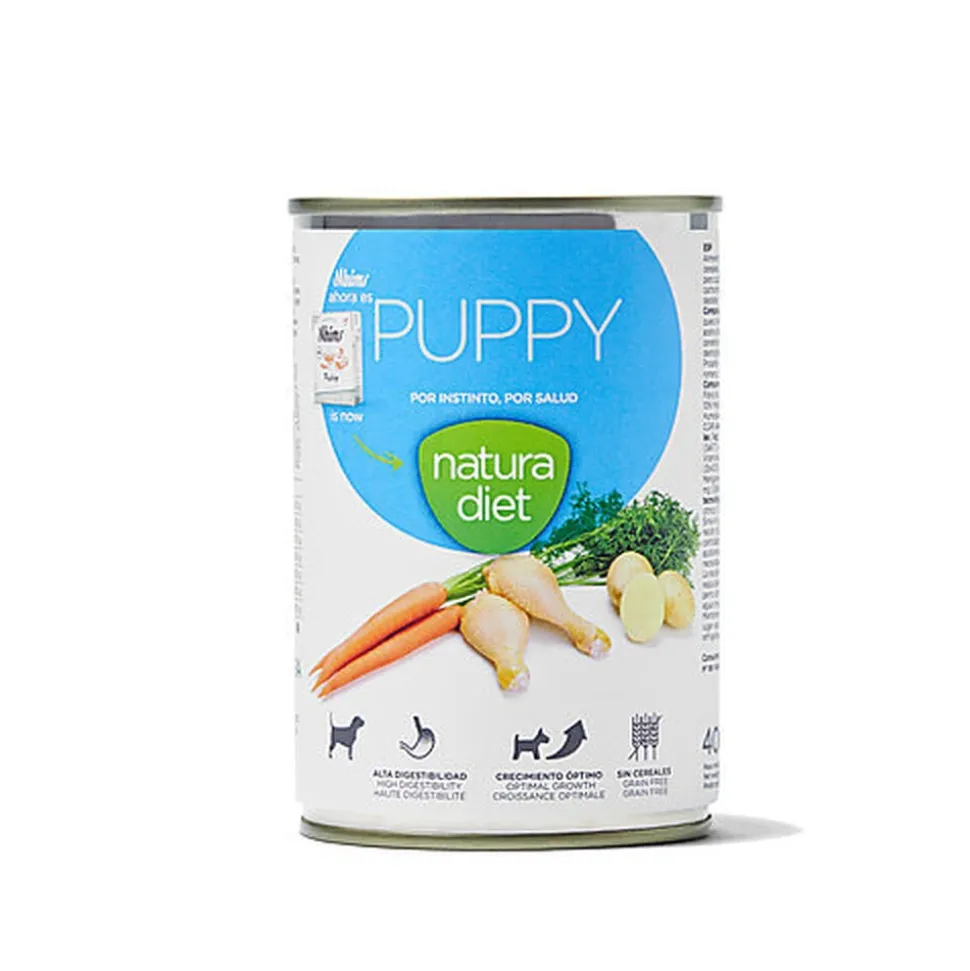 Aliment complet et naturel, sans céréales, sous forme de pâtée, élaboré pour répondre aux besoins des chiots du sevrage à l’âge adulte.