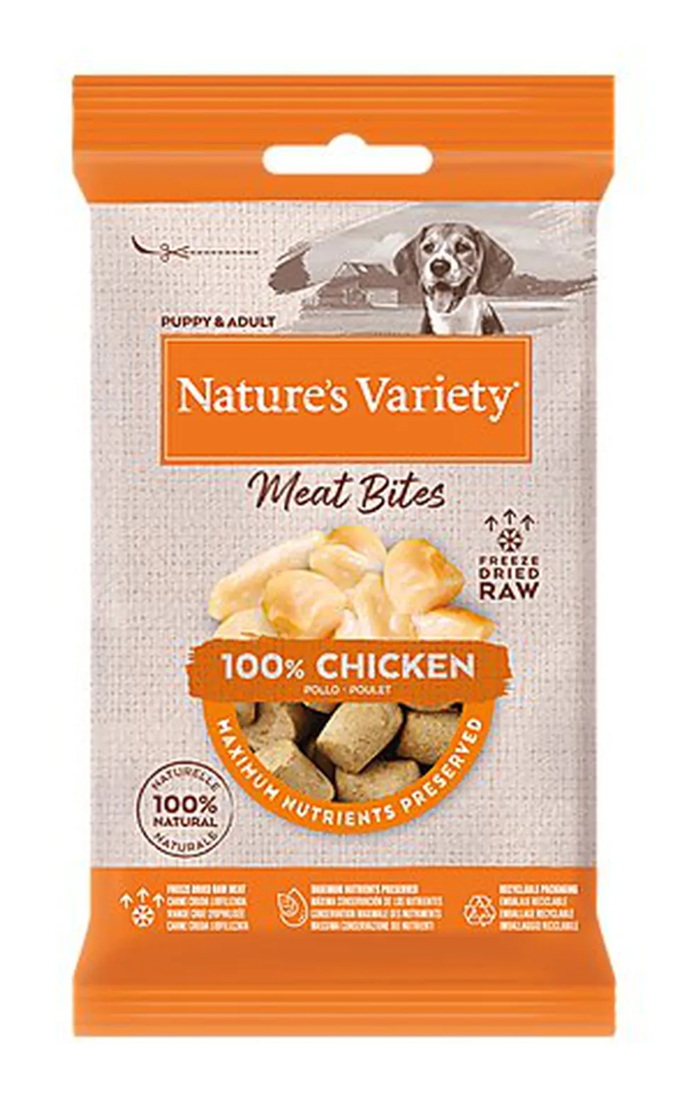 Aliment complémentaire pour chiens de tous âges et tailles.Bouchées de viande lyophilisées pour une conservation maximale des nutriments.