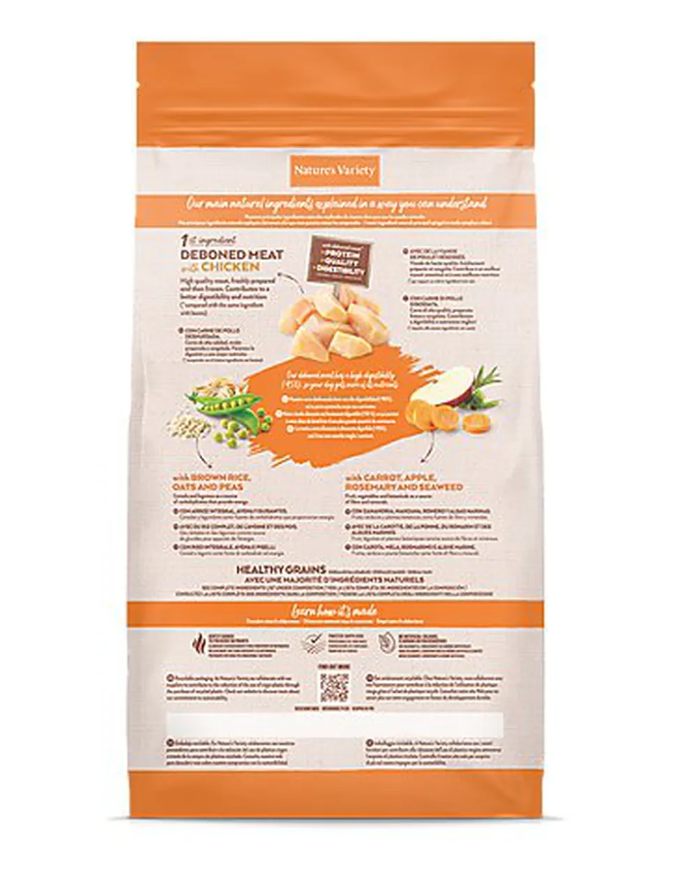 Élaboré avec de la viande de poulet désossée comme ingrédient principal. Complété avec des fruits et des légumes soigneusement sélectionnés et des céréales complètes.