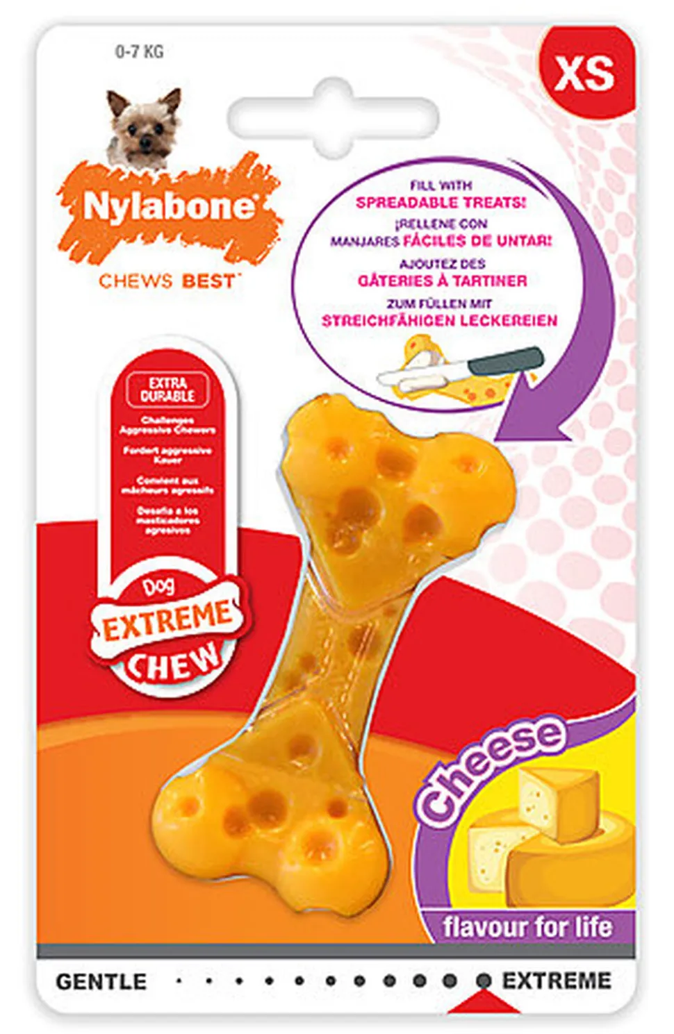 De par sa conception, l’os à mâcher NYLABONE CHEESE BONE Fromage résiste aux mâchoires les plus puissantes !