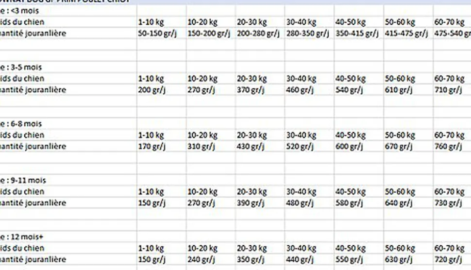 | Âge de l’animal | Chiot |