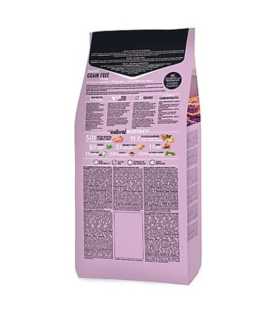 Indiqué pour satisfaire les besoins nutritionnels des chats stérilisés. Élaboré avec 50% de viande de poulet et de dinde, riche en fibre et avec une teneur modérée en graisses, il permet de maintenir le poids idéal tout en favorisant une bonne santé intestinale.
