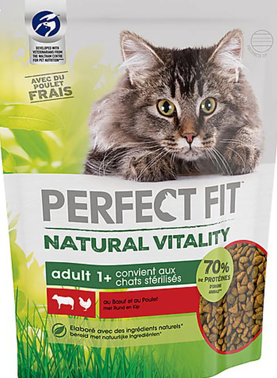 Aliment complet élaboré avec des ingrédients naturels pour chat adulte qui convient aux chats stérilisés. Toutes les recettes PERFECT FIT ont été développées avec nos nutritionnistes en alimentation animale et nos vétérinaires du Centre de WALTHAM pour la nutrition des animaux de compagnie, afin de garantir une alimentation de pointe, 100% complète et équilibrée.