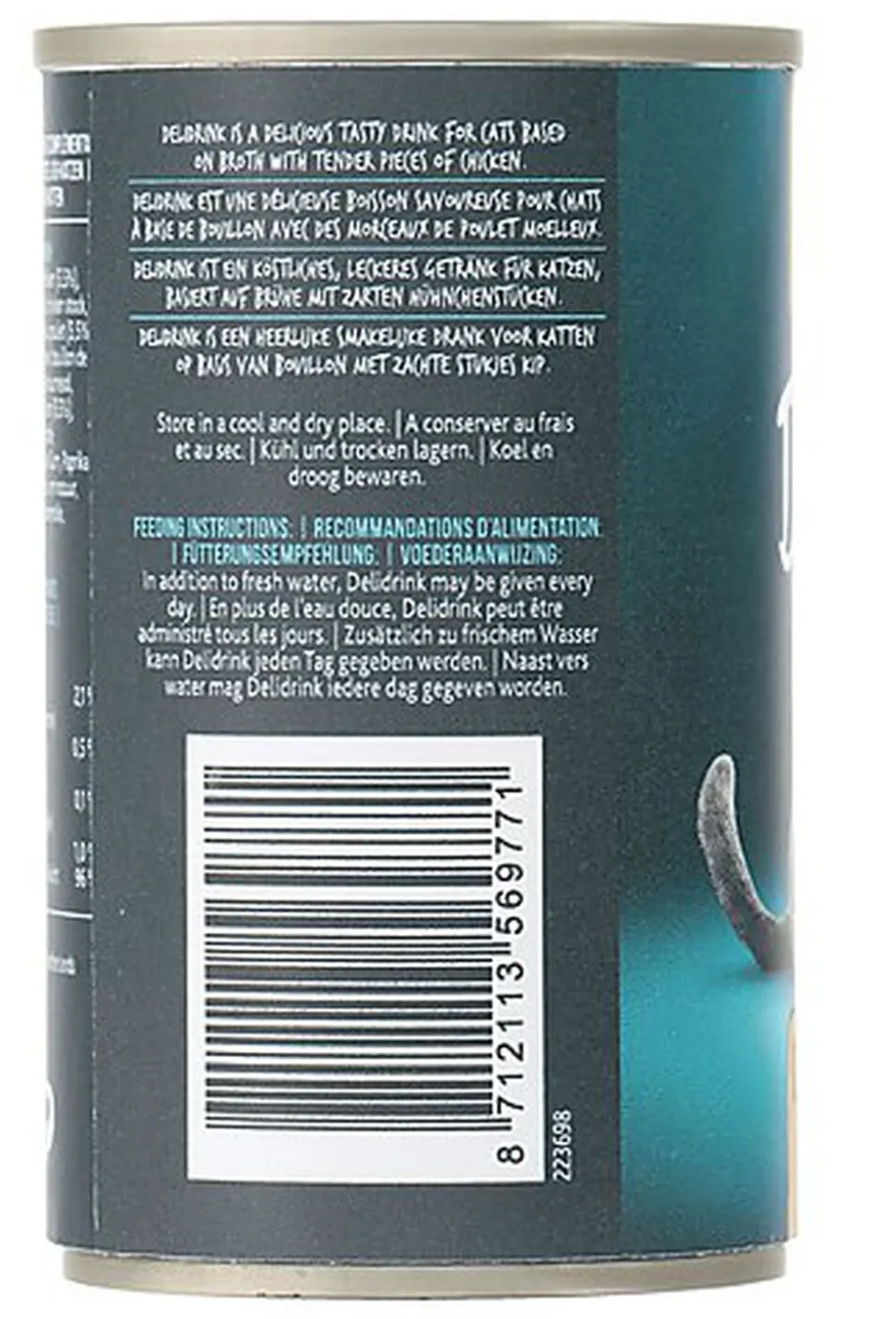Grâce au bouillon savoureux et aux tendres morceaux de poulet, cette collation est irrésistible pour tous les chats et convient également aux chats aux dents pauvres. Ou versez le Delidrink sur la nourriture sèche, pour que même le repas quotidien devienne un vrai dîner 5 étoiles!