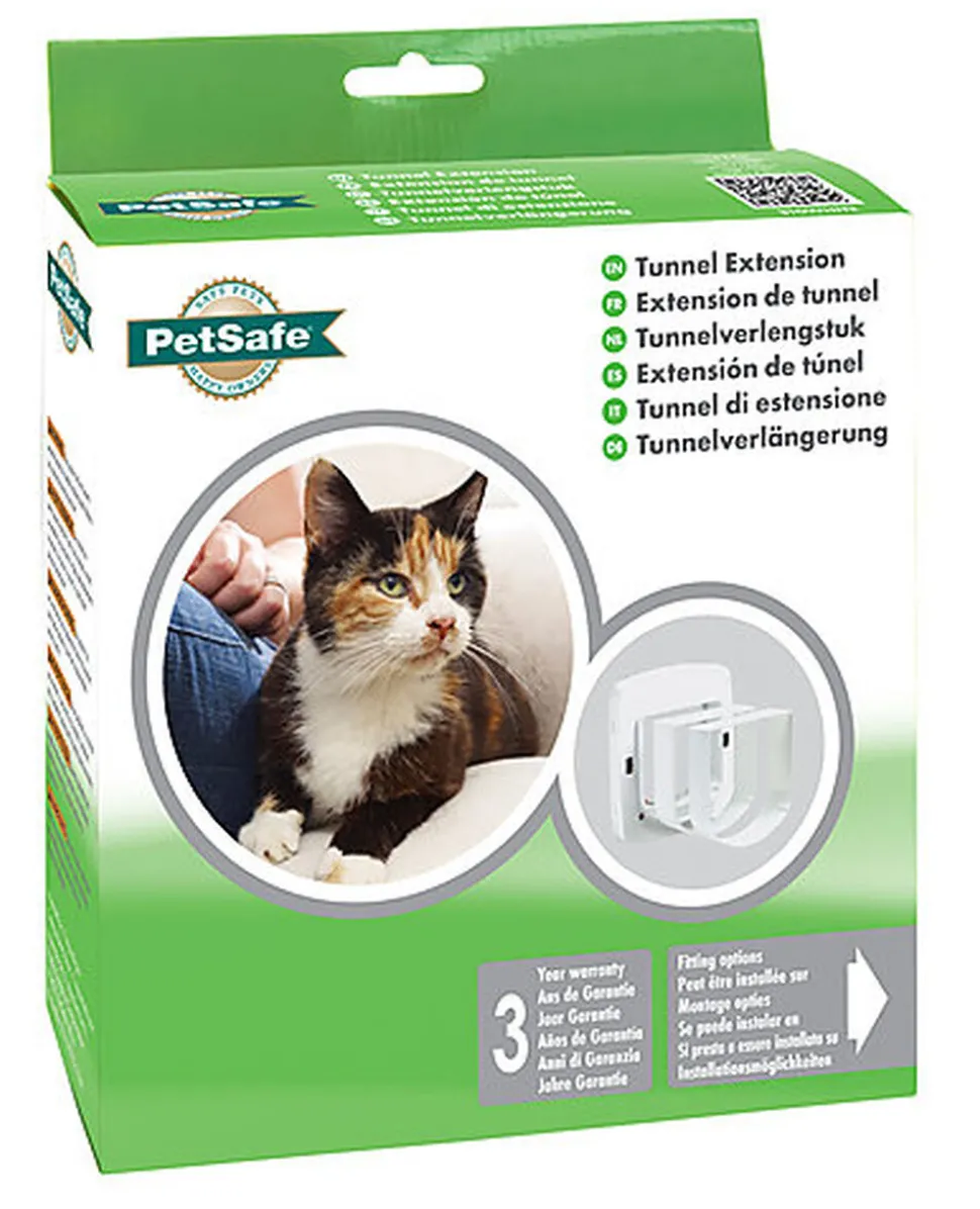 Cette extension permet un passage à la fois confortable et sécurisé pour votre chat à la chatière blanche avec puce magnétique de Petsafe.