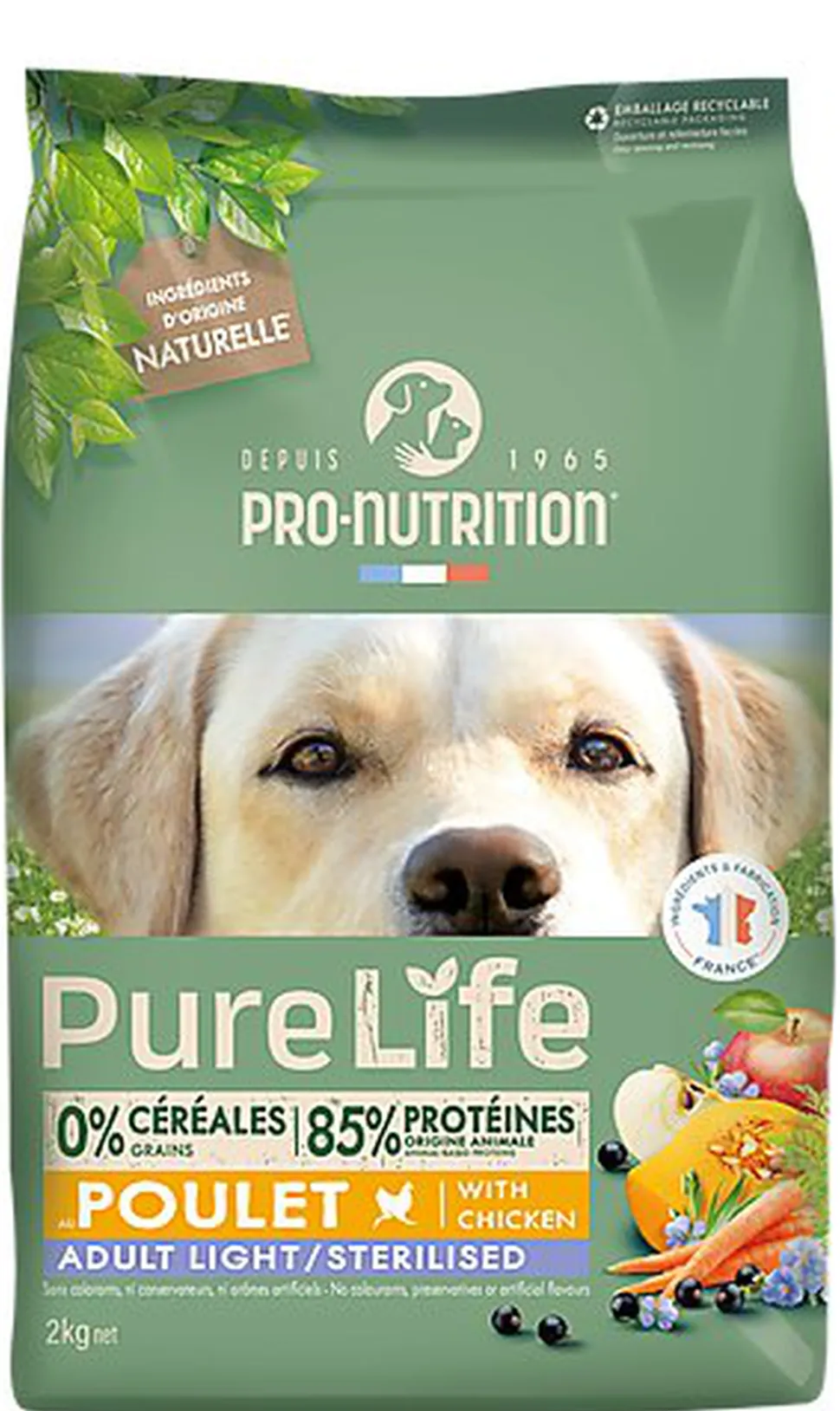 Aliment complet sans céréales pour Chiens ayant tendance à l’embonpoint et/ou stérilisés, de toutes races. Pure Life vous offre des recettes ultra-appétentes conçues pour apporter un confort digestif optimal, et le juste équilibre de nutriments essentiels pour la vitalité et le bien-être de votre animal.