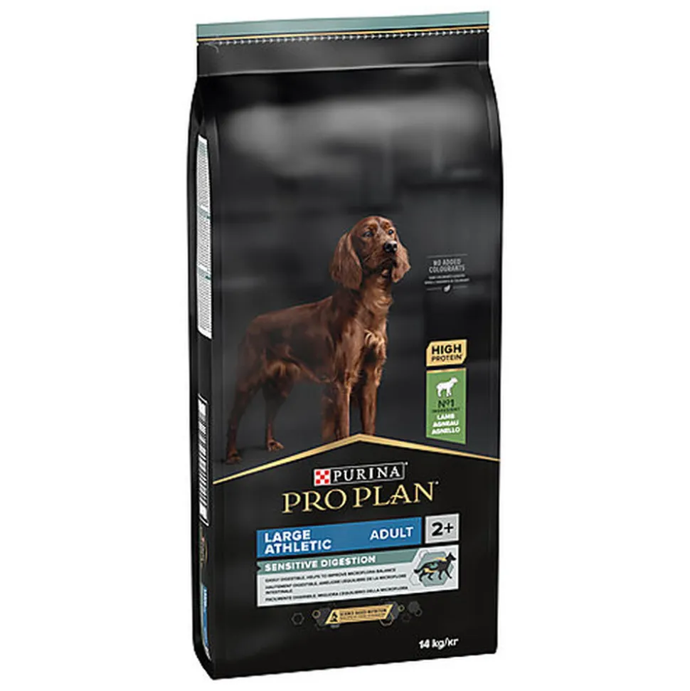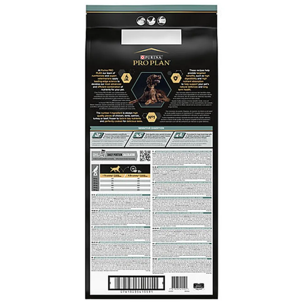 PURINA PRO PLAN Sensitive Digestion avec OPTIDIGEST(TM), sont des croquettes formulées avec des protéines de Poulet ou d’Agneau de haute qualité, spécialement conçues pour les chiens adultes de toutes tailles ayant une digestion sensible.