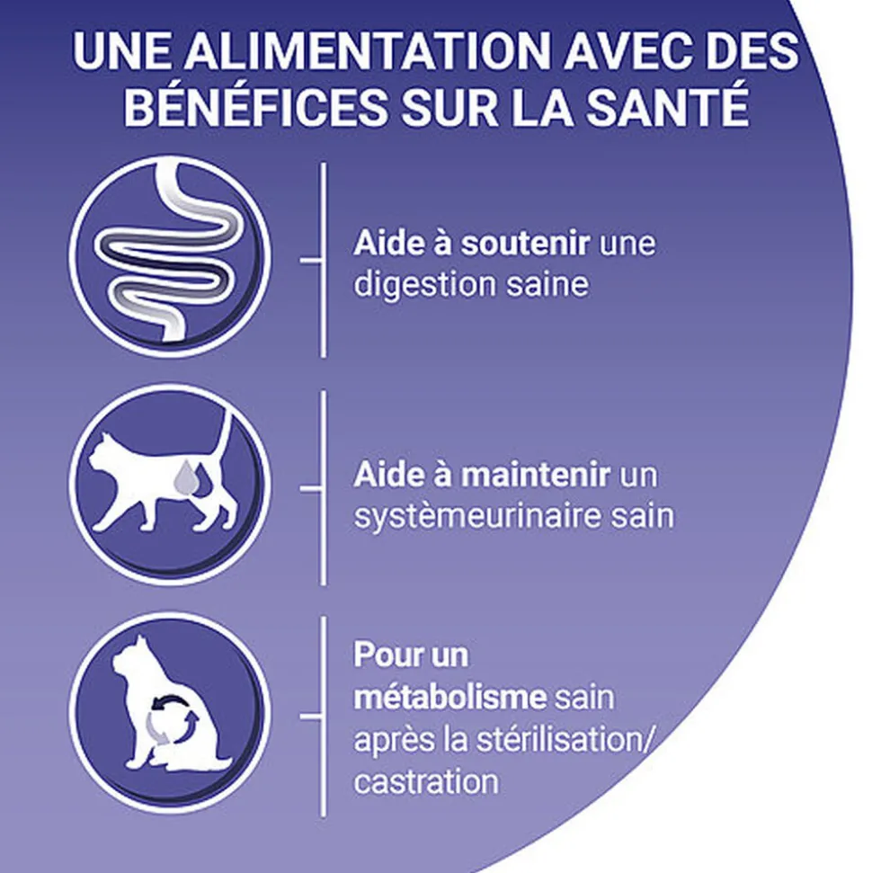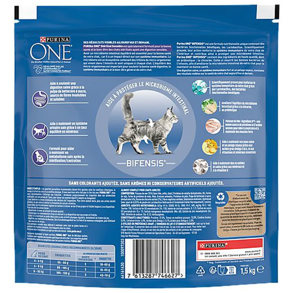 PURINA ONE® Adulte est une recette nutritionnellement adaptée aux besoins des chats âgés de 1 an et plus.Avoir un microbiome intestinal équilibré est essentiel pour la bonne santé de votre chat, car il a un impact direct sur son système immunitaire. Le microbiome est un écosystème contenant des trillions de micro-organismes qui vivent dans l’intestin et sont uniques à chaque chat. L’équilibre des micro-organismes est important pour soutenir la bonne santé digestive, le système immunitaire et le bien-être général de votre chat. PURINA ONE® BIFENSIS® est une formule nutritionnelle unique contenant des bactéries fonctionnelles bénéfiques, les Lactobacillus. Scientifiquement prouvée, leur action renforce le système immunitaire de votre chat de l’intérieur et contribue ainsi à protéger son microbiome intestinal. PURINA ONE® BIFENSIS® contient des ingrédients de haute qualité, dont un prébiotique : la chicorée. Celle-ci nourrit les bonnes bactéries de l’intestin, afin d’améliorer le microbiome intestinal de votre chat pour le maintenir en bonne santé. Une digestion saine, un système immunitaire fort et un pelage brillant, constatez des résultats visibles sur la santé de votre chat aujourd’hui et demain.