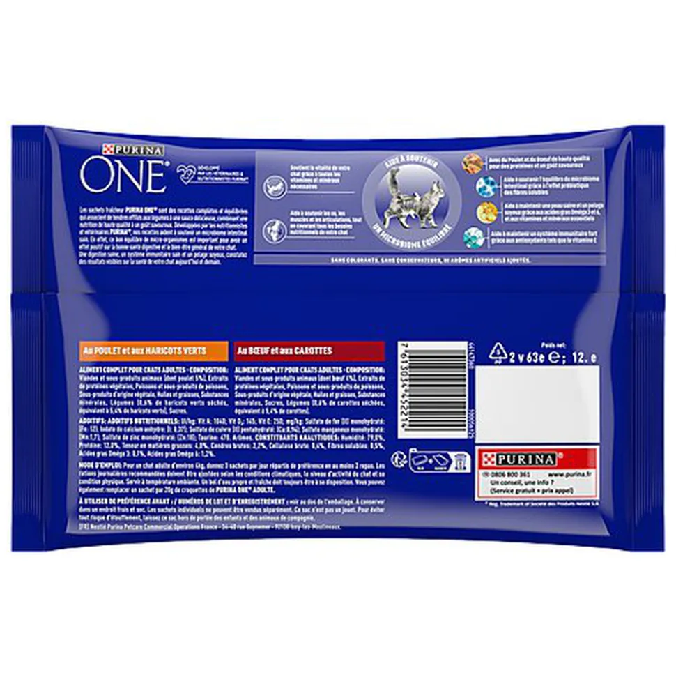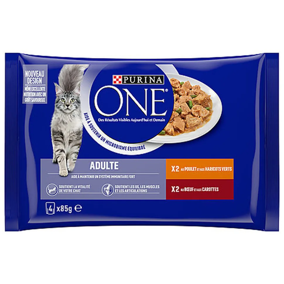 Les sachets fraîcheur PURINA ONE® sont des recettes complètes et équilibrées qui associent de tendres effilés aux légumes à une sauce délicieuse, combinant une nutrition de haute qualité à un goût savoureux. Développées par les nutritionnistes et vétérinaires PURINA®, nos recettes aident à soutenir un microbiome intestinal sain. En effet, ce bon équilibre de micro-organismes est important pour avoir un effet positif sur la bonne santé digestive et le bien-être général de votre chat. Une digestion saine, un système immunitaire sain et un pelage soyeux, constatez des résultats visibles sur la santé de votre chat aujourd’hui et demain.
