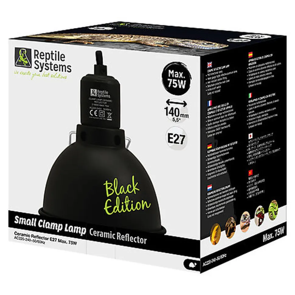 Clamp Lamp Black Edition Small ⌀ 140mm, avec mécanisme de serrage multidirectionnel.