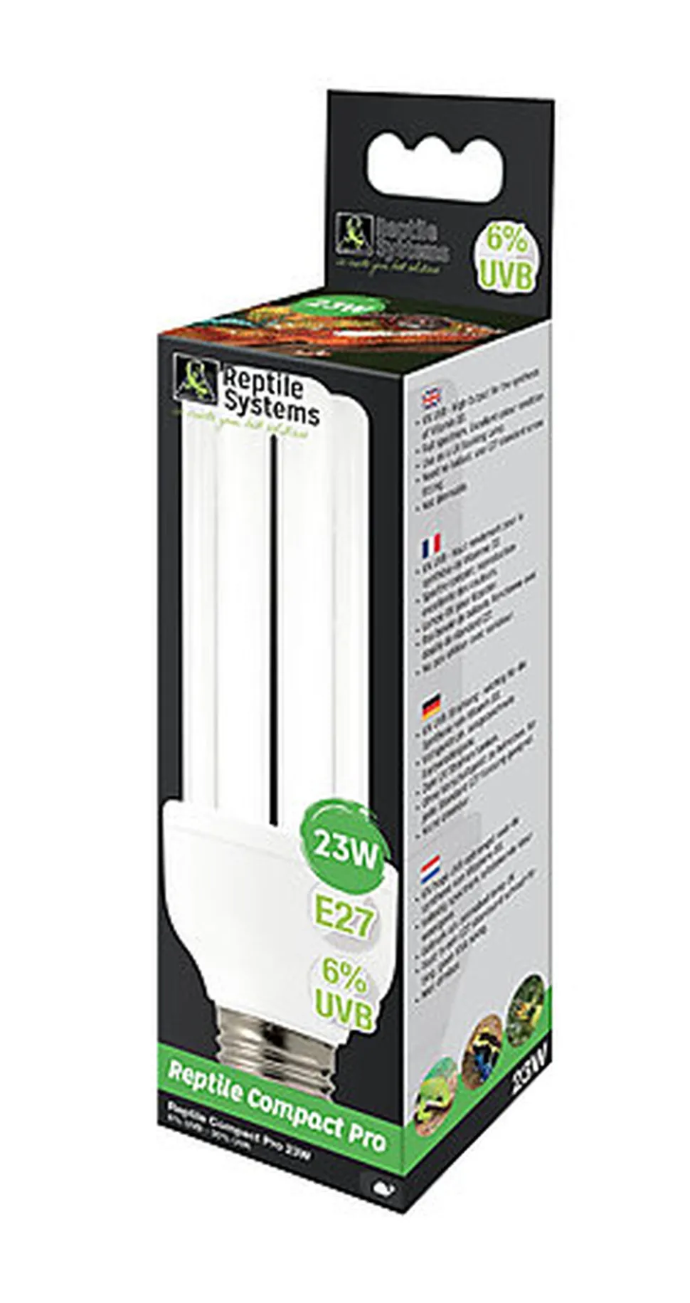 L’ampoule Reptile Compact Pro 6% UVB 3U, culot E27 de Reptile Systems convient parfaitement aux reptiles des forêts. Cette lampe produit 6% d’UVB, ce qui encourage la synthèse de la vitamine D3 , qui permet à vos reptiles de métaboliser le calcium, ainsi que 30% d’UVA.
