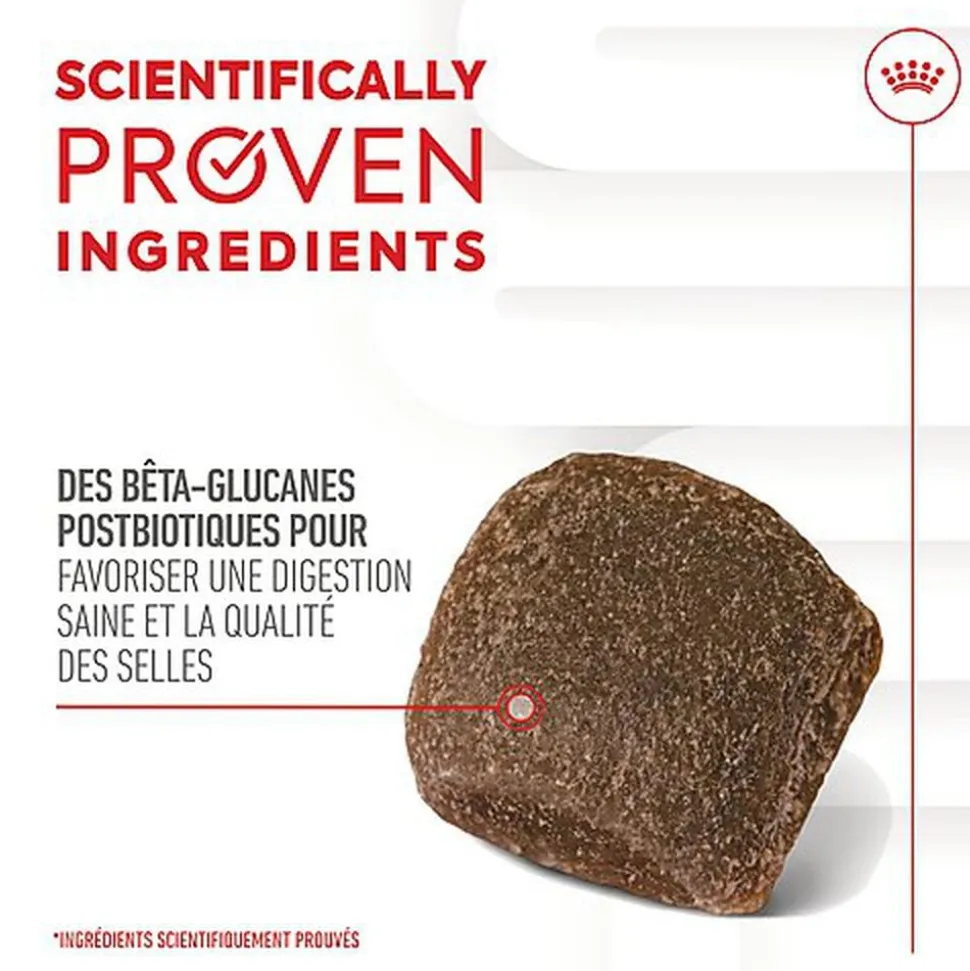 Les suppléments ROYAL CANIN® DIGESTION CHEWS ADULT SUPPLEMENTS sont formulés pour favoriser la santé digestive de votre chien en incluant des prébiotiques qui aident à maintenir un équilibre sain des bactéries intestinales, et des bêta-glucanes (postbiotiques) qui favorisent une digestion saine et la qualité des selles.