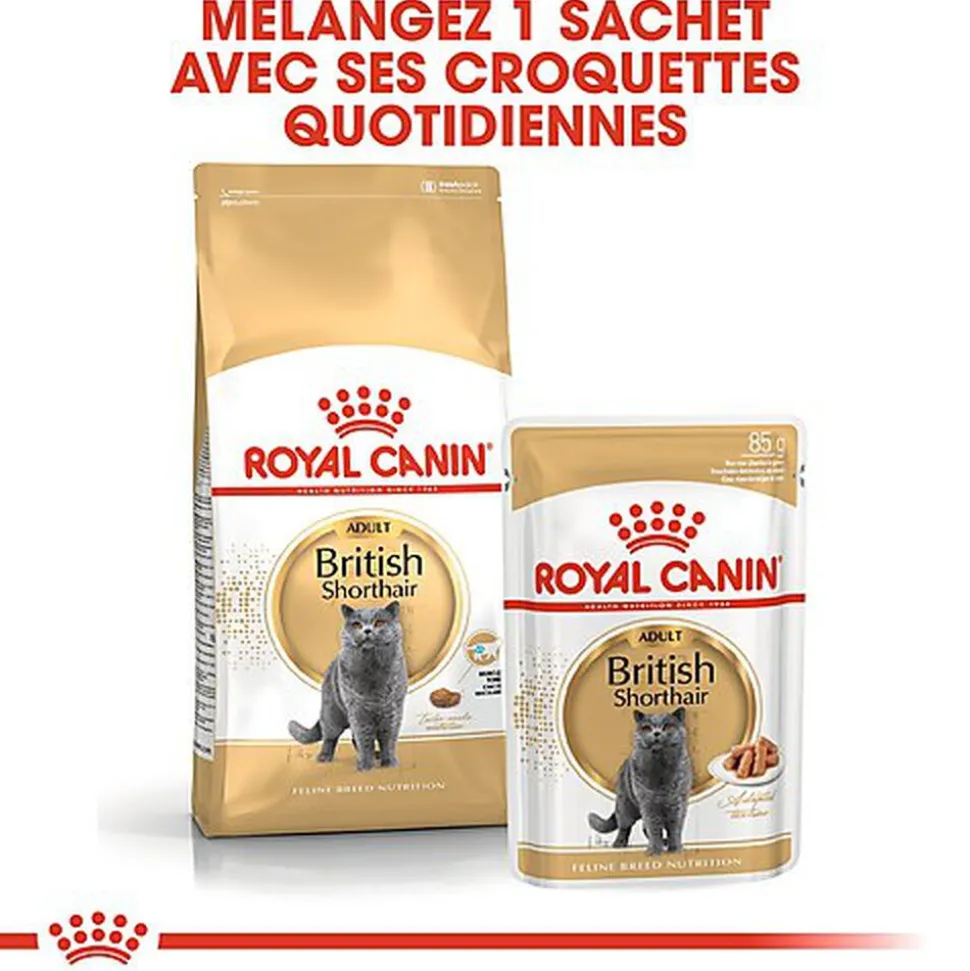 Pour répondre aux préférences individuelles de chaque chat, ROYAL CANIN® British Shorthair Adult est également disponible sous forme d’aliment humide en émincées en sauce. Si vous envisagez une alimentation mixte, il vous suffit de suivre nos instructions pour vous assurer que votre chat reçoit la quantité de nourriture sèche et humide nécessaire pour un bénéfice optimal.