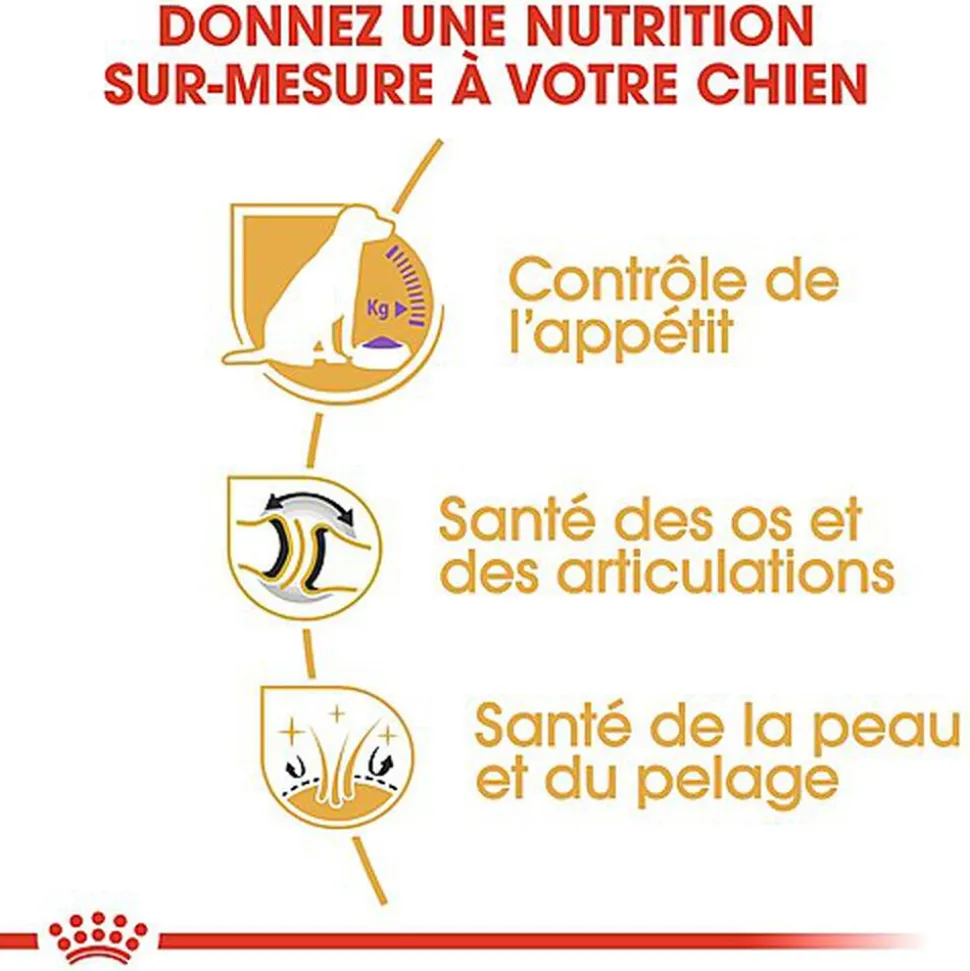 CROQUETTE EXCLUSIVE : La texture et la formule de la croquette sont adaptées au Labrador Retriever et sa forme exclusive aide à ralentir la vitesse d’ingestion.