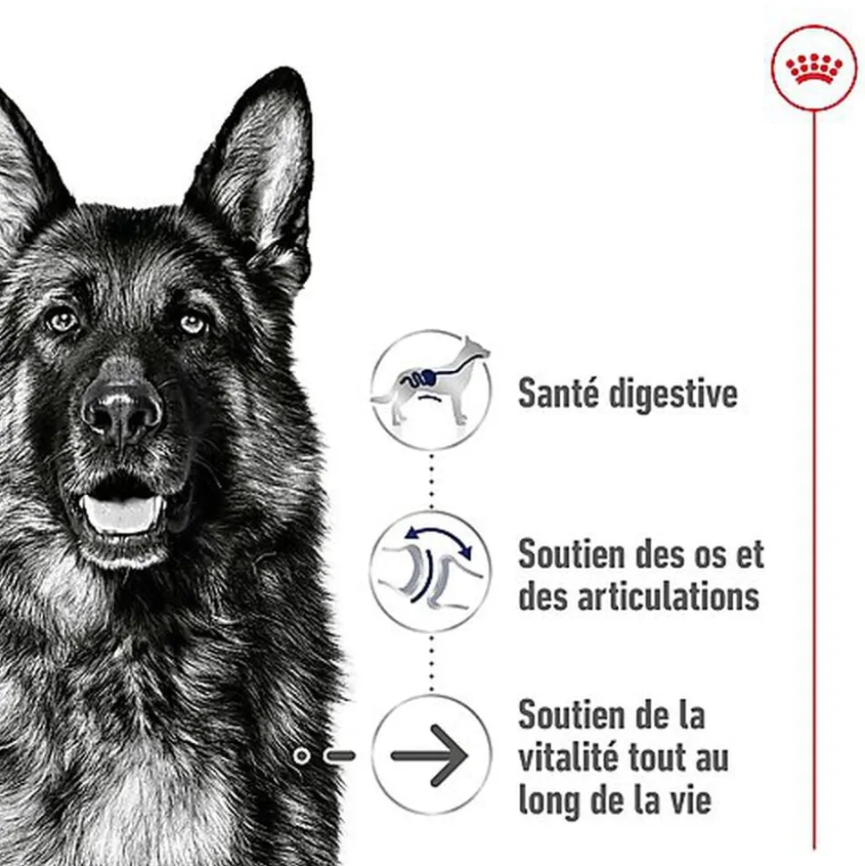 SOUTIEN DU CAPITAL OSTÉO-ARTICULAIRE : Contribue à la bonne santé des os et articulations particulièrement sollicités chez les chiens de grande taille.